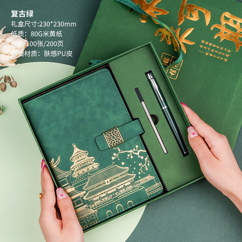 hardback gift box a5 mirror buckle national fashion dark green