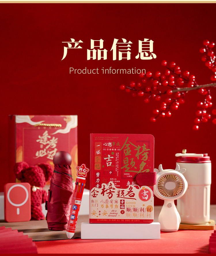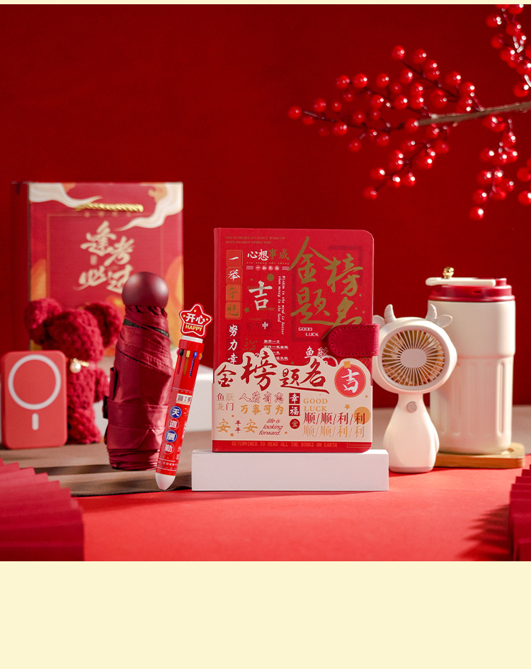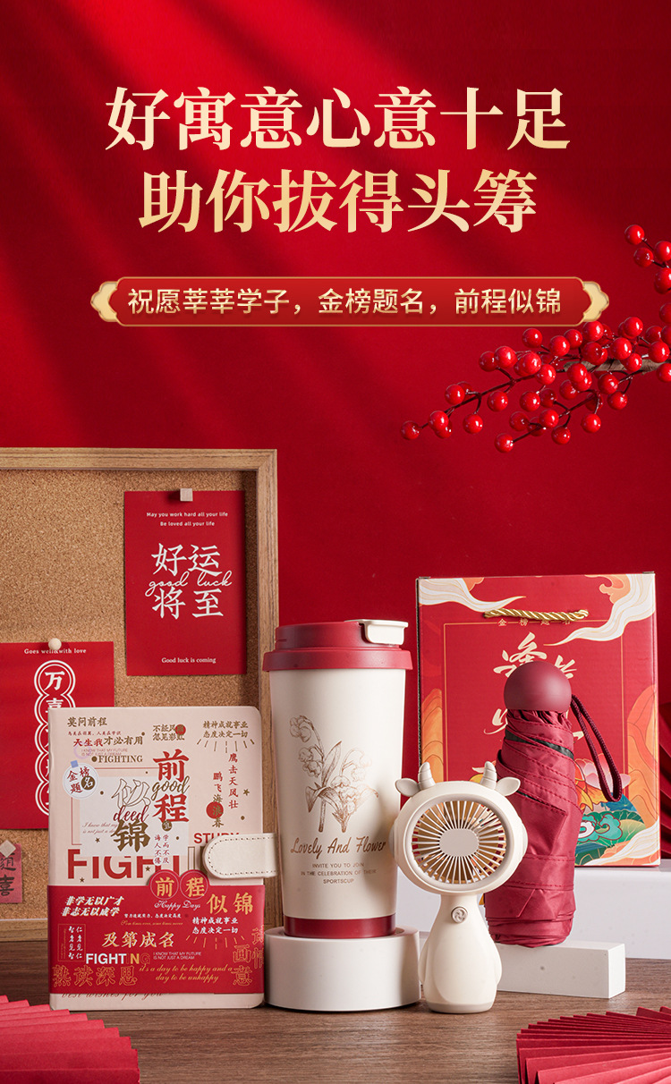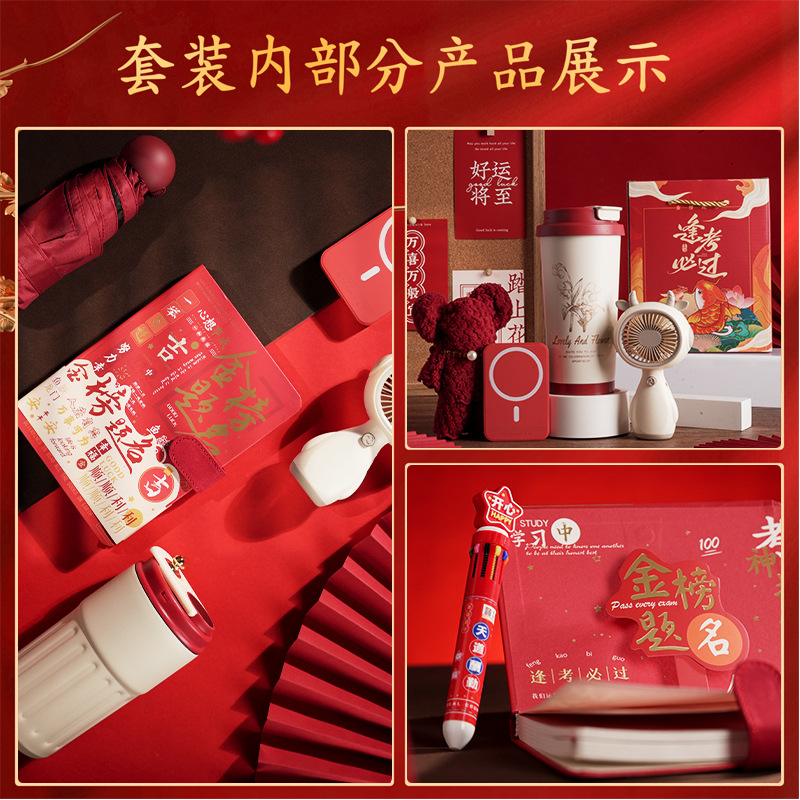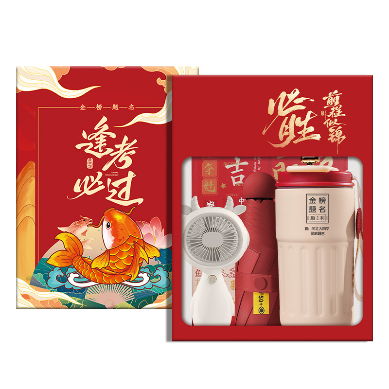 pass every exam four-piece set: digital display thermos cup (red) + gold ranking title powder + umbrella (red) + signature pen (red)