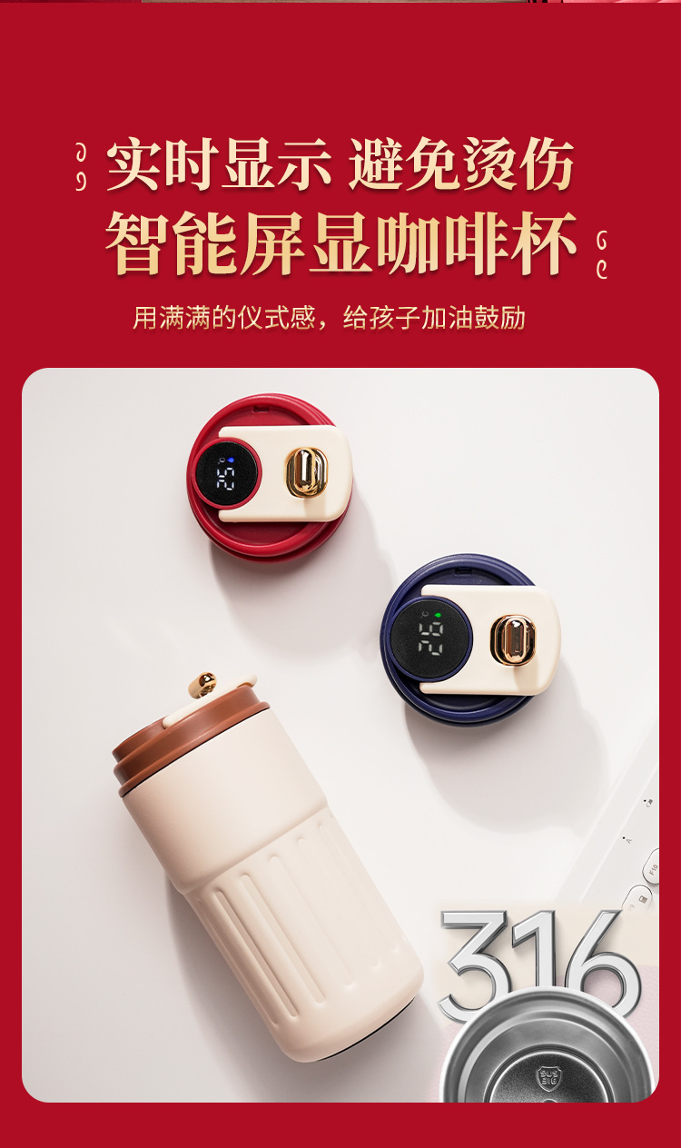 future like brocade four-piece set: digital display thermos cup (red) + future like brocade + umbrella (red) + signature pen (red)