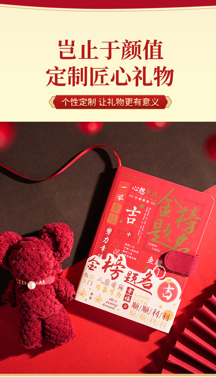 pass every exam three-piece set: linglan thermos cup (red) + pink gold ranking title + towel (red)