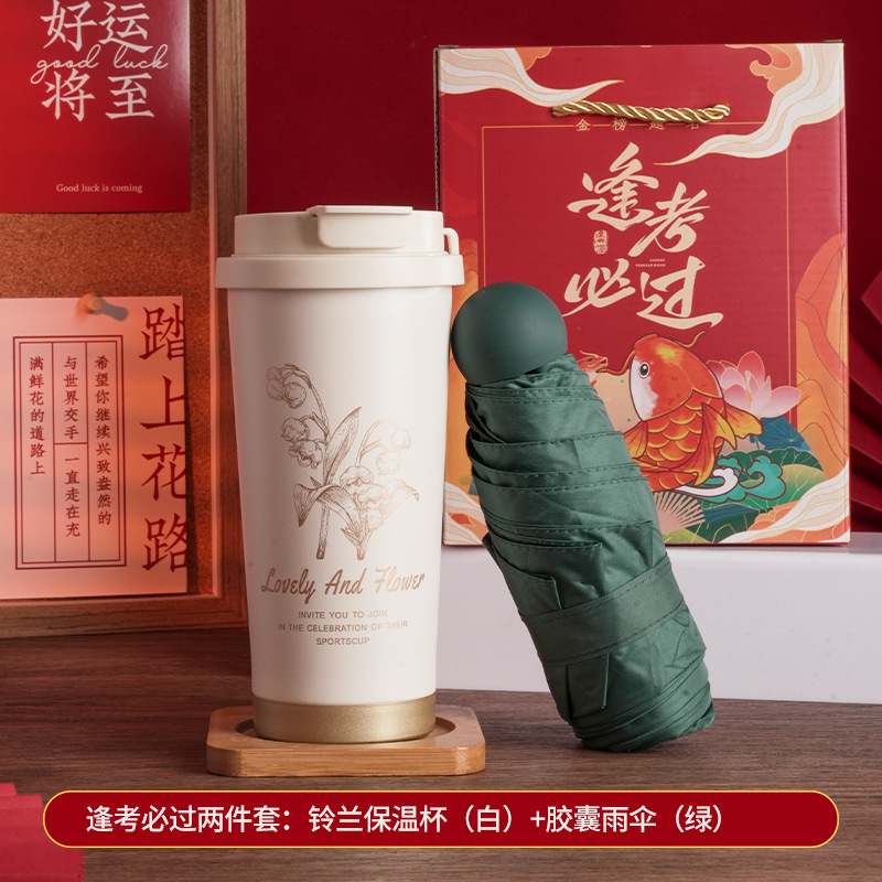 pass every exam two-piece set: linglan thermos cup (white) + capsule umbrella (green)