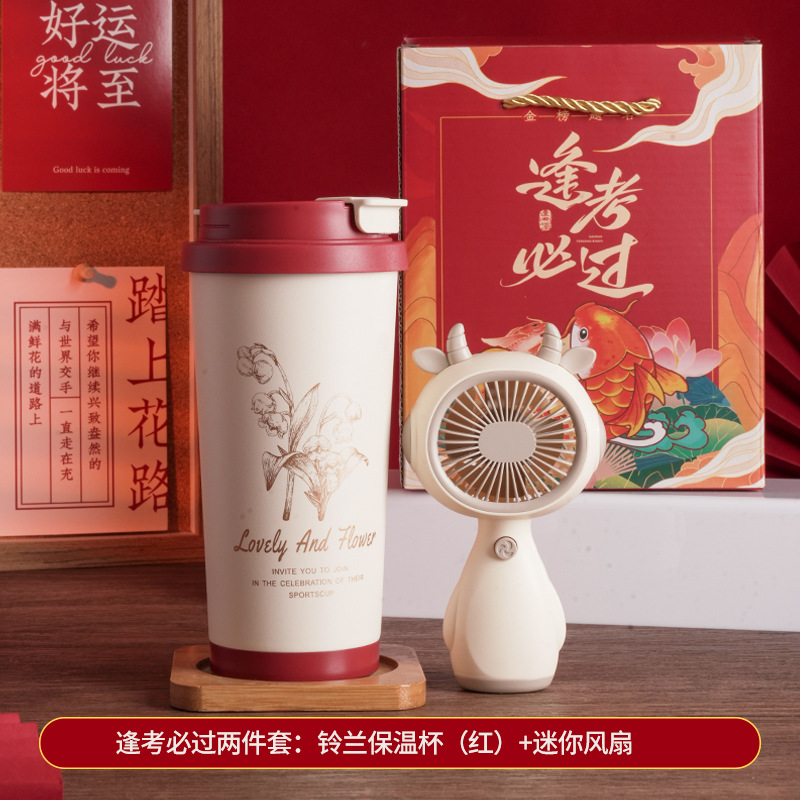 pass every exam two-piece set: linglan thermos cup (red) + mini fan