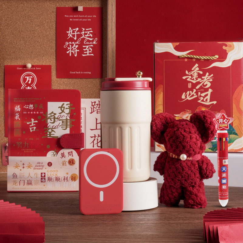 pass every exam two-piece set: linglan thermos cup (red) + magnetic suction power bank (red)