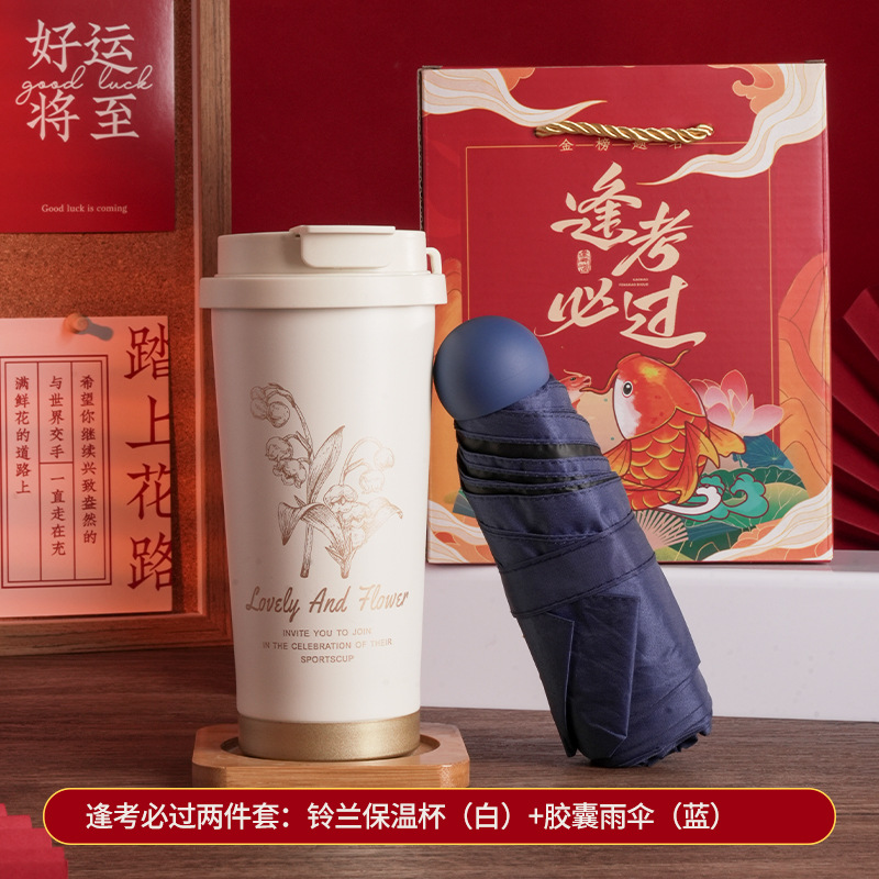 pass every exam two-piece set: linglan thermos cup (white) + capsule umbrella (blue)