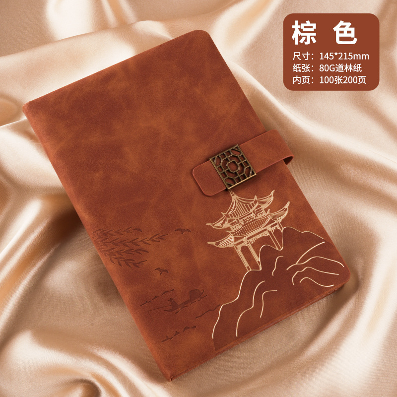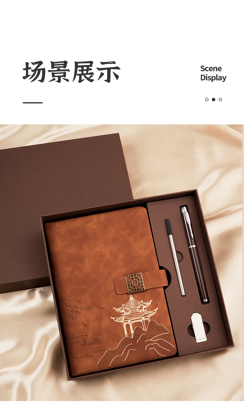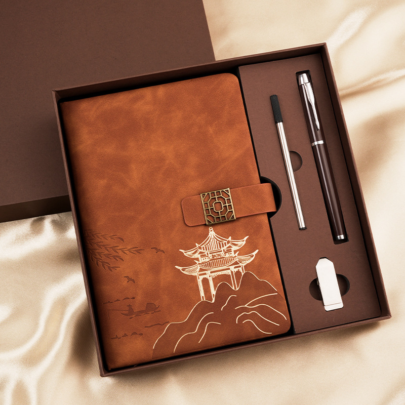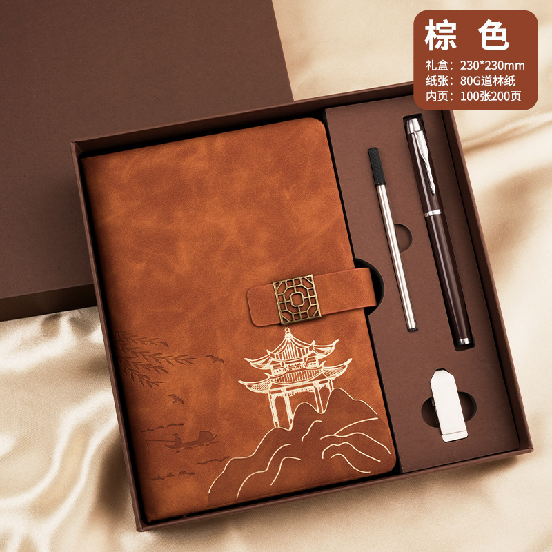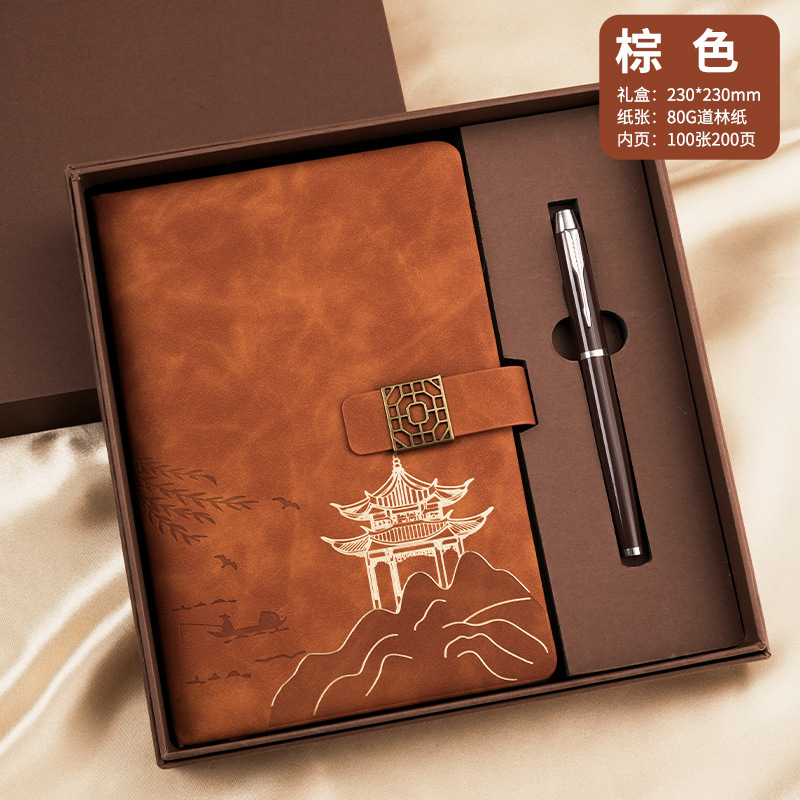 national style landscape pane buckle suit ''(brown notebook + same color pen + gift box gift bag)