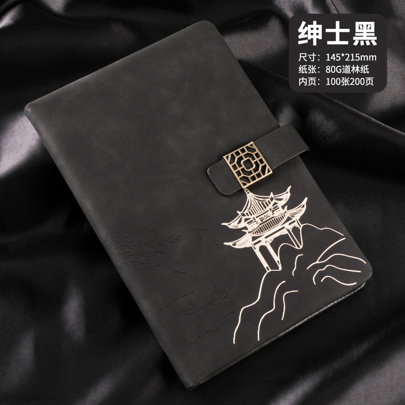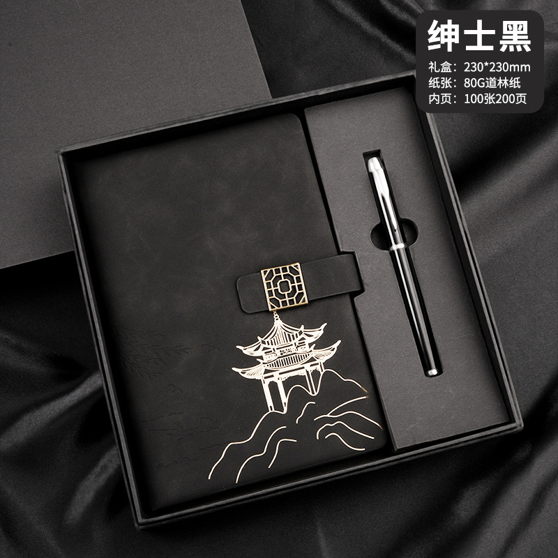 national style landscape pane buckle suit ''(gentleman's black notebook + same color pen + gift box gift bag)