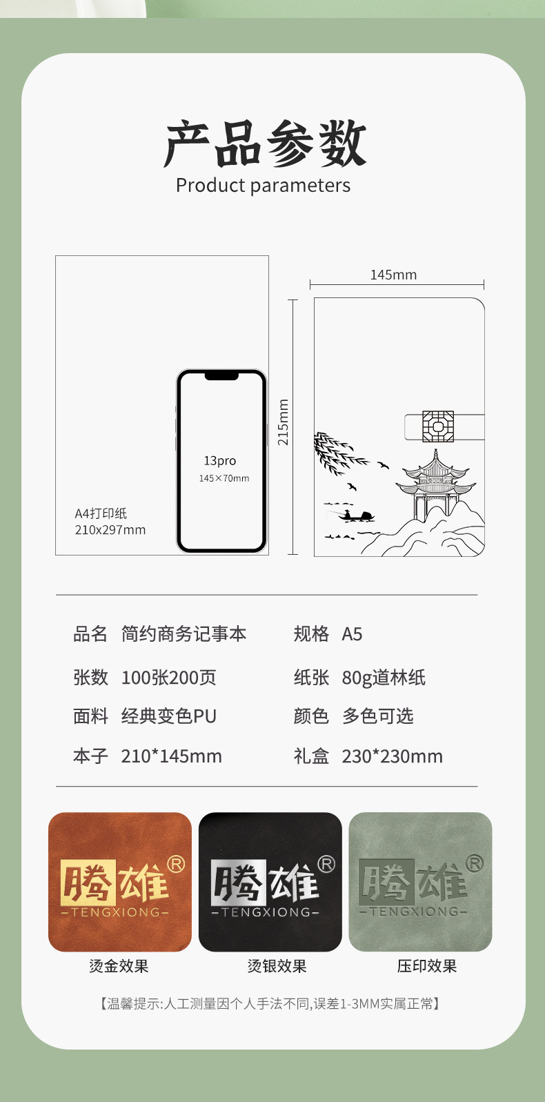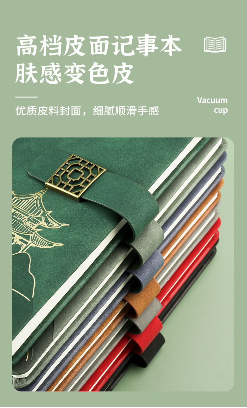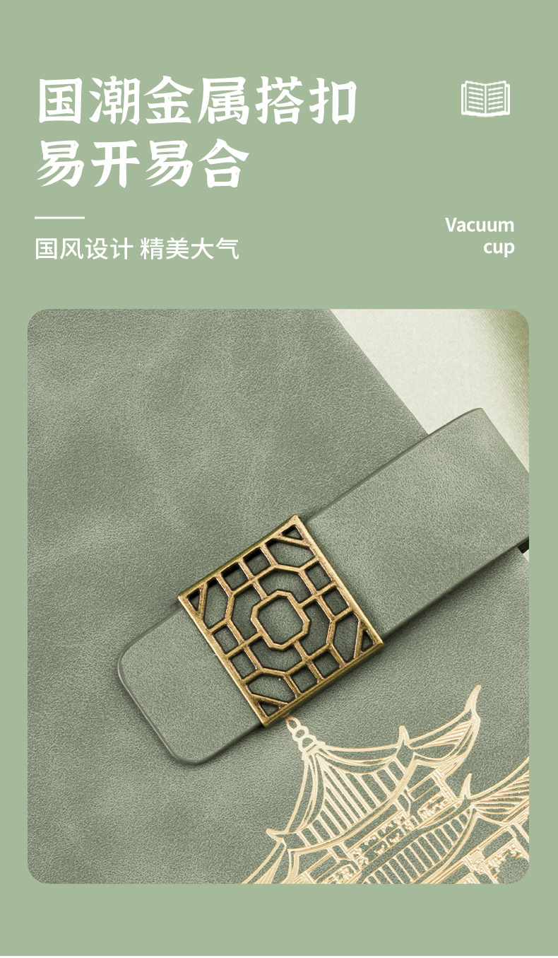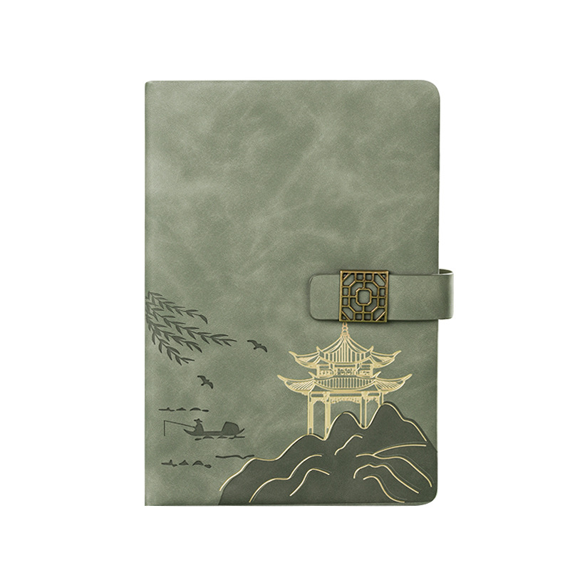 national style landscape pane buckle suit ''(retro green notebook + same color pen + gift box gift bag)
