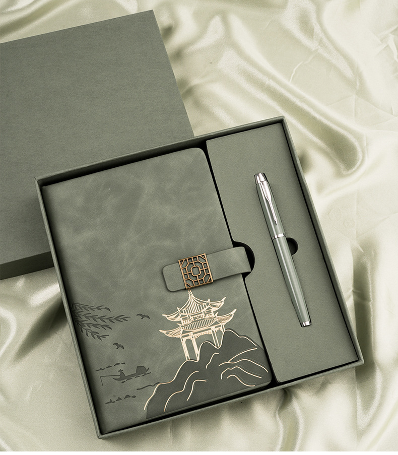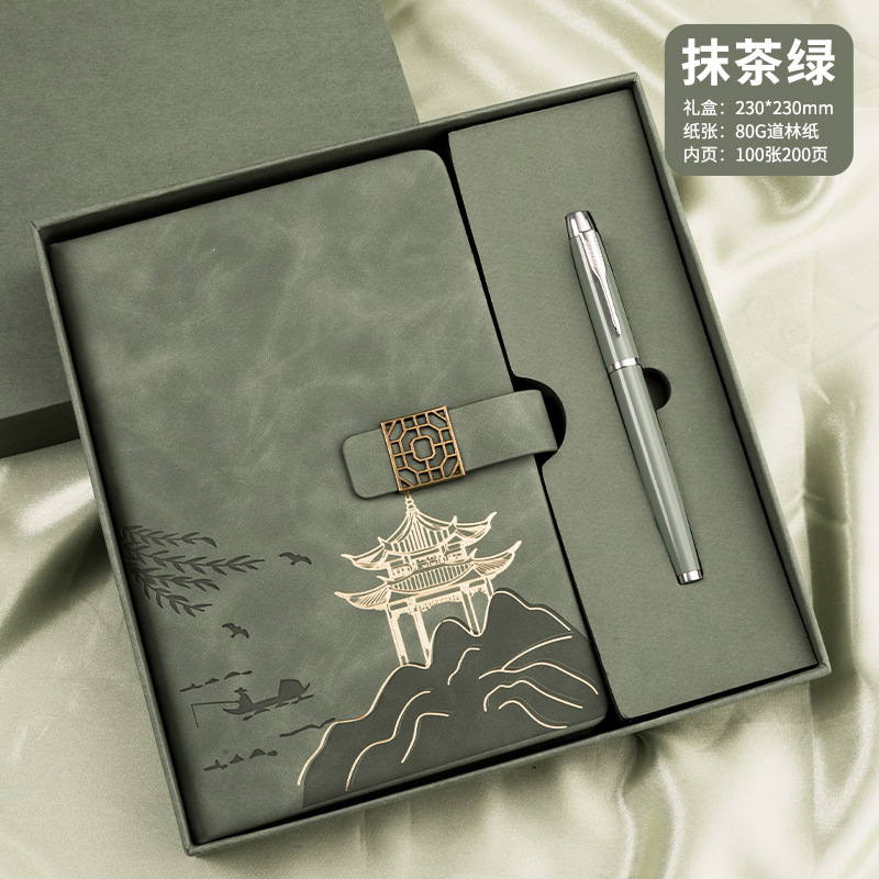 national style landscape pane buckle suit ''(matcha green notebook + same color pen + gift box gift bag)
