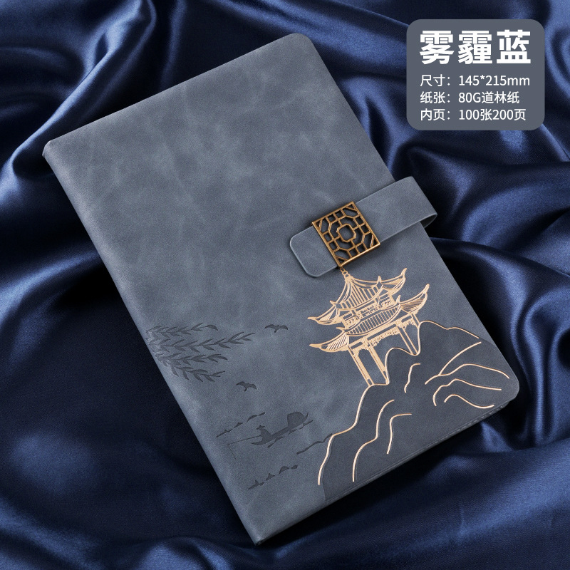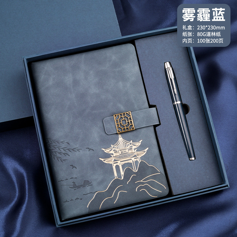 national style landscape pane buckle suit ''(haze blue notebook + same color pen + gift box gift bag)