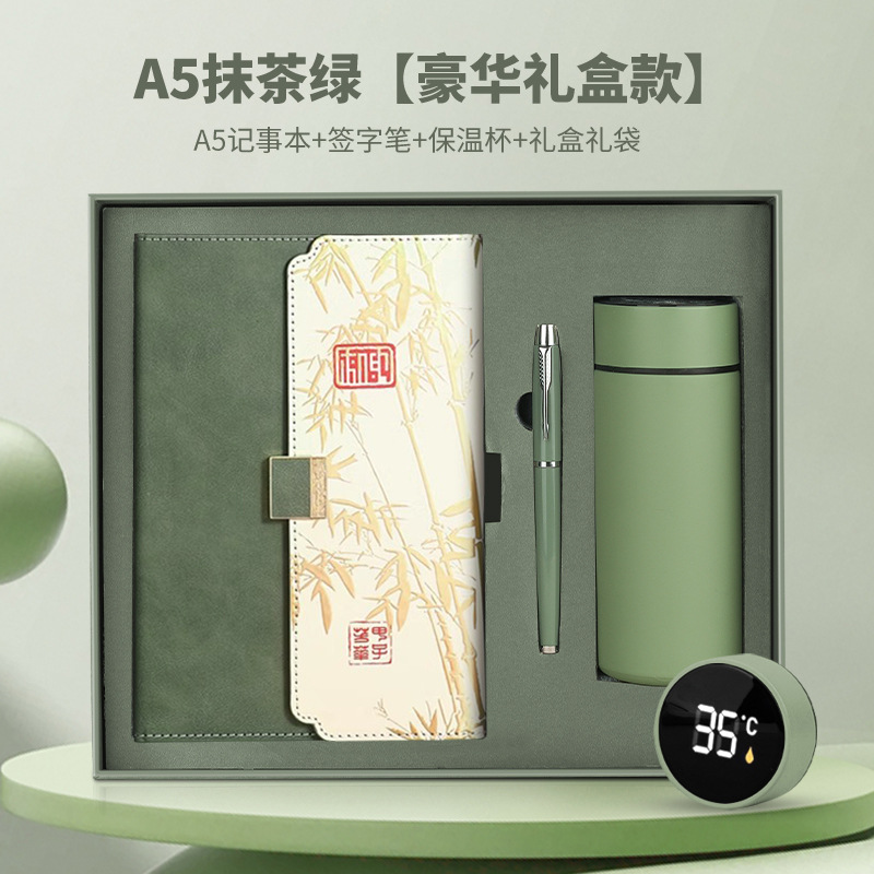 a5 matcha green (luxury gift box) a5 notepad + signature pen + thermos cup + gift box gift bag
