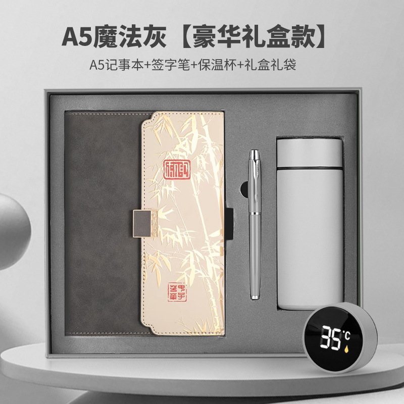 a5 magic gray (luxury gift box) a5 notepad + signature pen + thermos cup + gift box gift bag