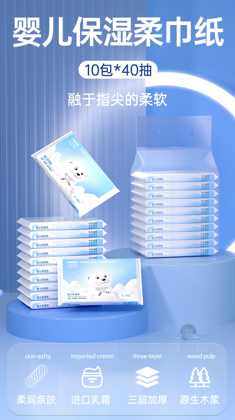 baby tissue 40 pumping portable cream paper baby special newborn baby moisturizing soft tissue napkin soft towel