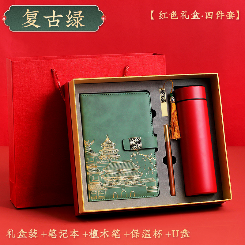 retro green [red thermos cup 4-piece gift box + gift set bag]]