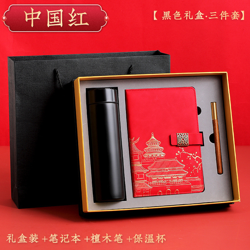chinese red [black thermos cup 3-piece gift box + gift set bag]]