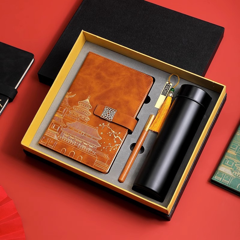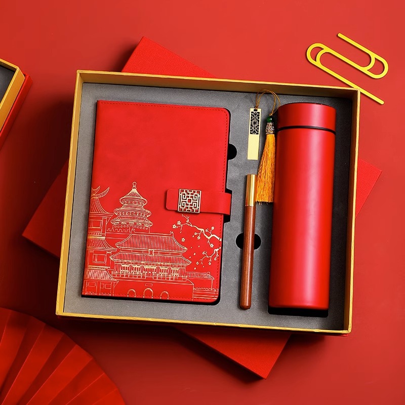 chinese red [red thermos cup 3-piece gift box + gift set bag]]
