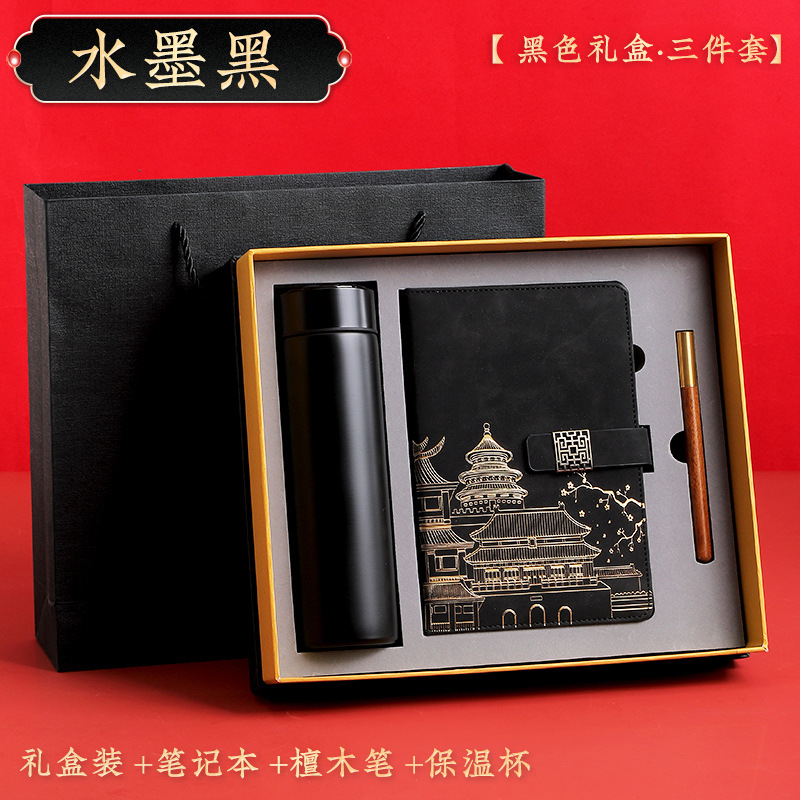 ink black [black thermos cup 3-piece gift box + gift set bag]]