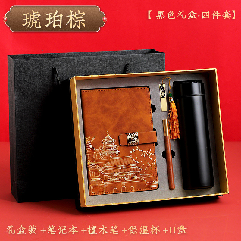 amber brown [black thermos cup 4-piece gift box + gift set bag]]