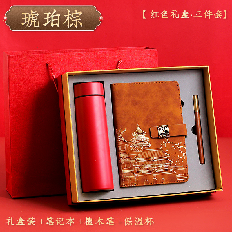 amber brown [red thermos cup 3-piece gift box + gift set bag]]