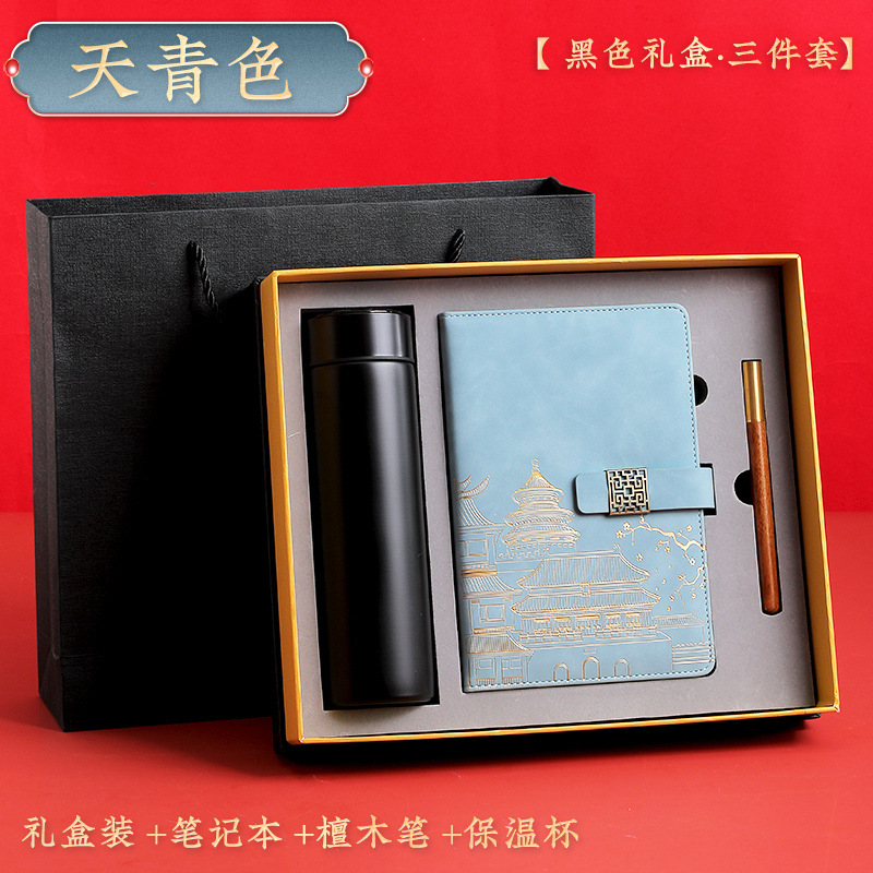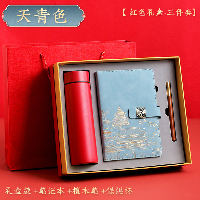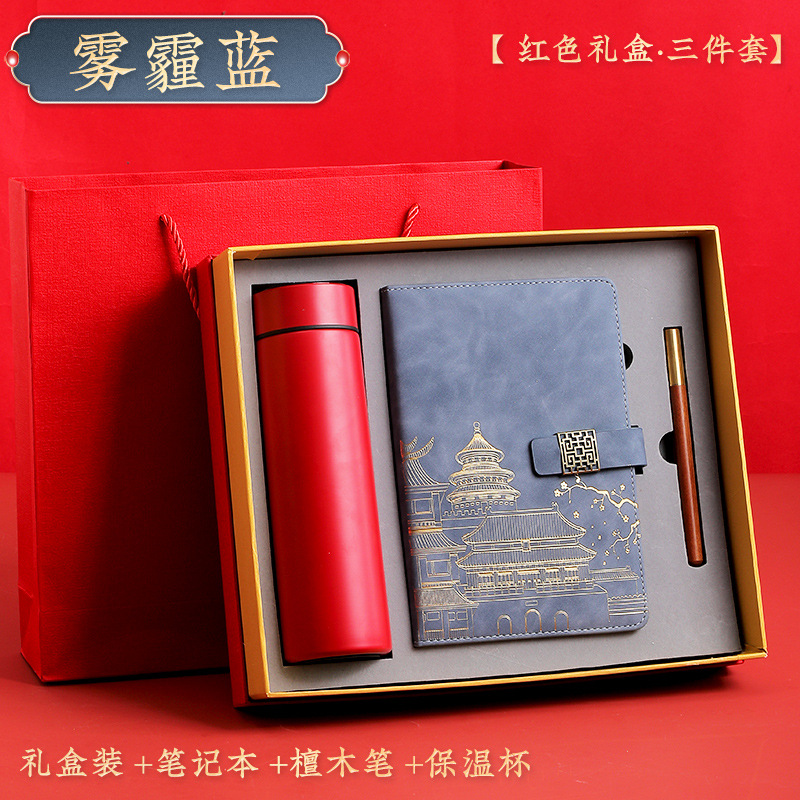 haze blue [red thermos cup 3-piece gift box + gift set bag]]