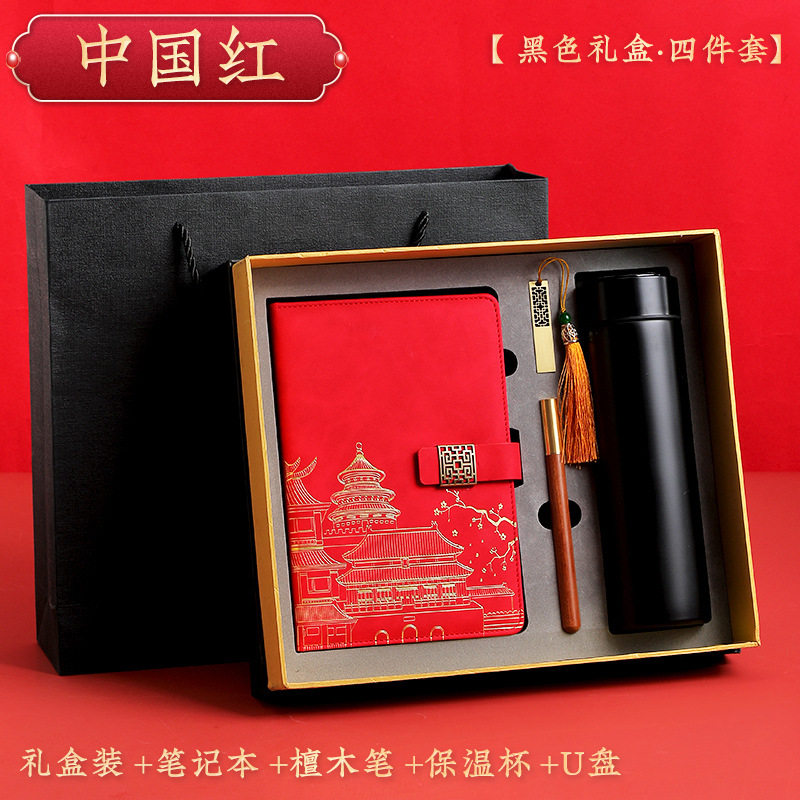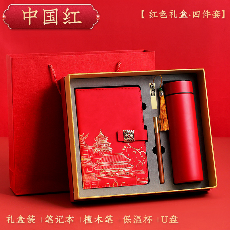 chinese red [red thermos cup 4-piece gift box + gift set bag]]