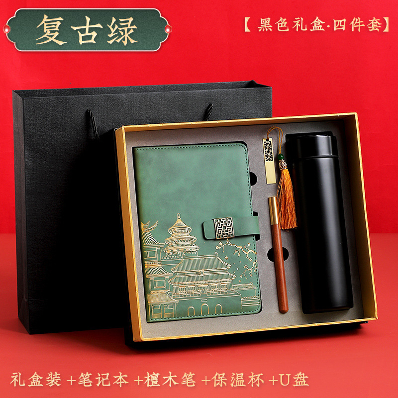retro green [black thermos cup 4-piece gift box + gift set bag]]
