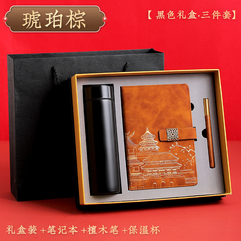 amber brown [black thermos cup 3-piece gift box + gift set bag]]