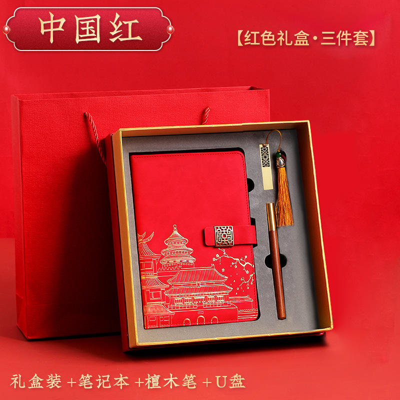 chinese red [u disk 3-piece gift box + gift set bag]]