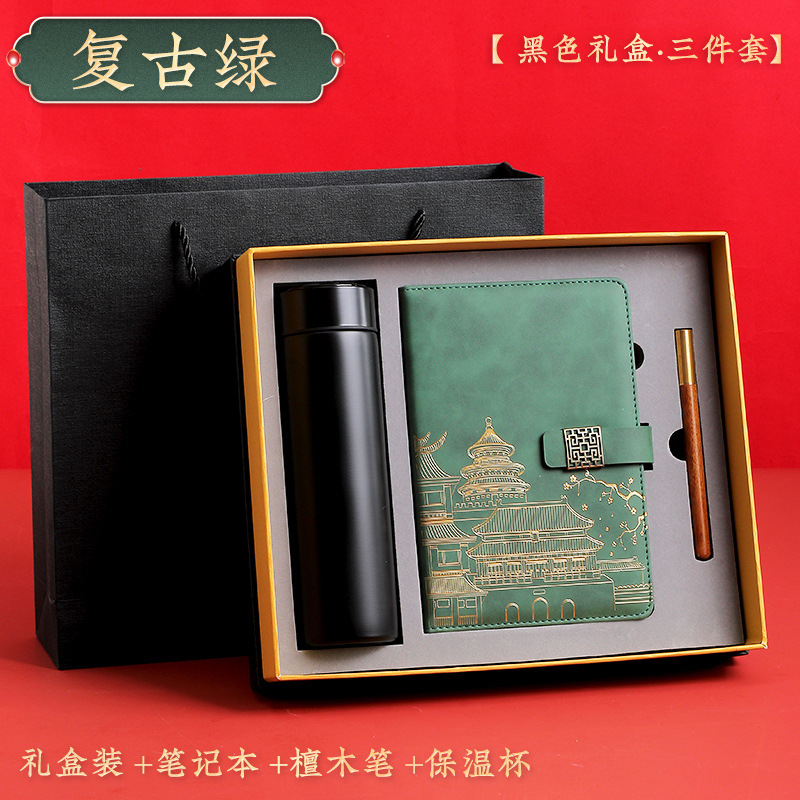 retro green [black thermos cup 3-piece gift box + gift set bag]]