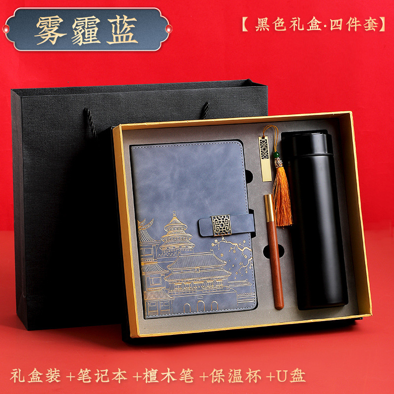 haze blue [red thermos cup 4-piece gift box + gift set bag]]