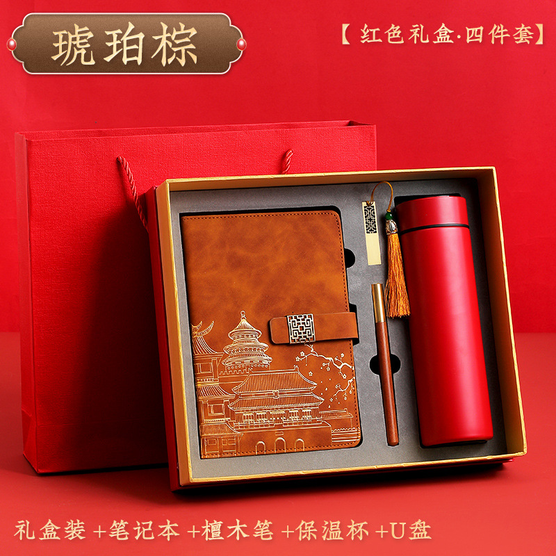 amber brown [red thermos cup 4-piece gift box + gift set bag]]