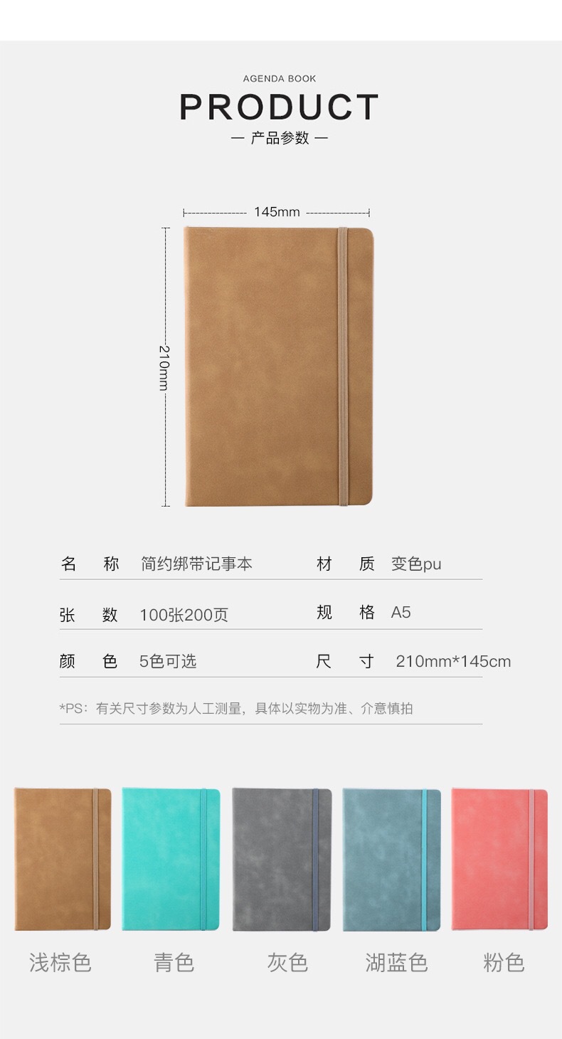 a5 hard leather bandage notebook book cross-border business office pu notebook diary book stationery custom logo