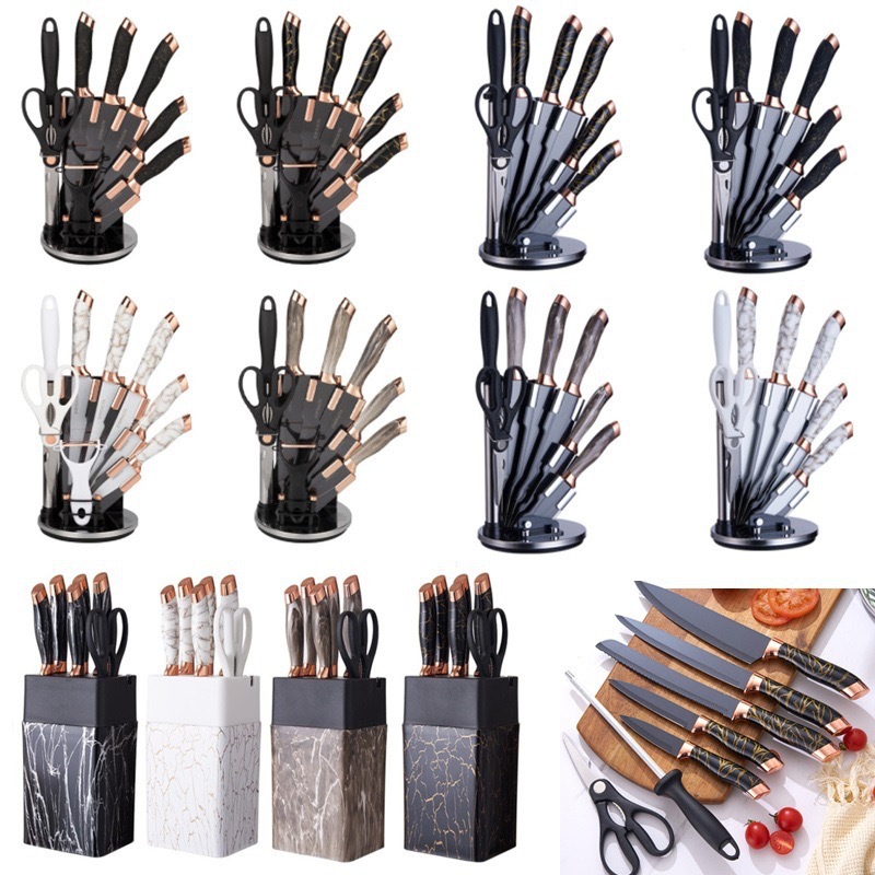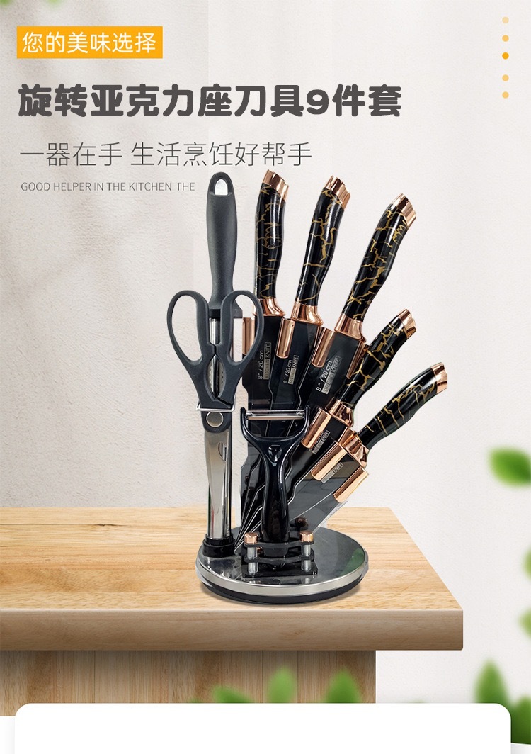 rotating acrylic knife holder 9-piece platinum set