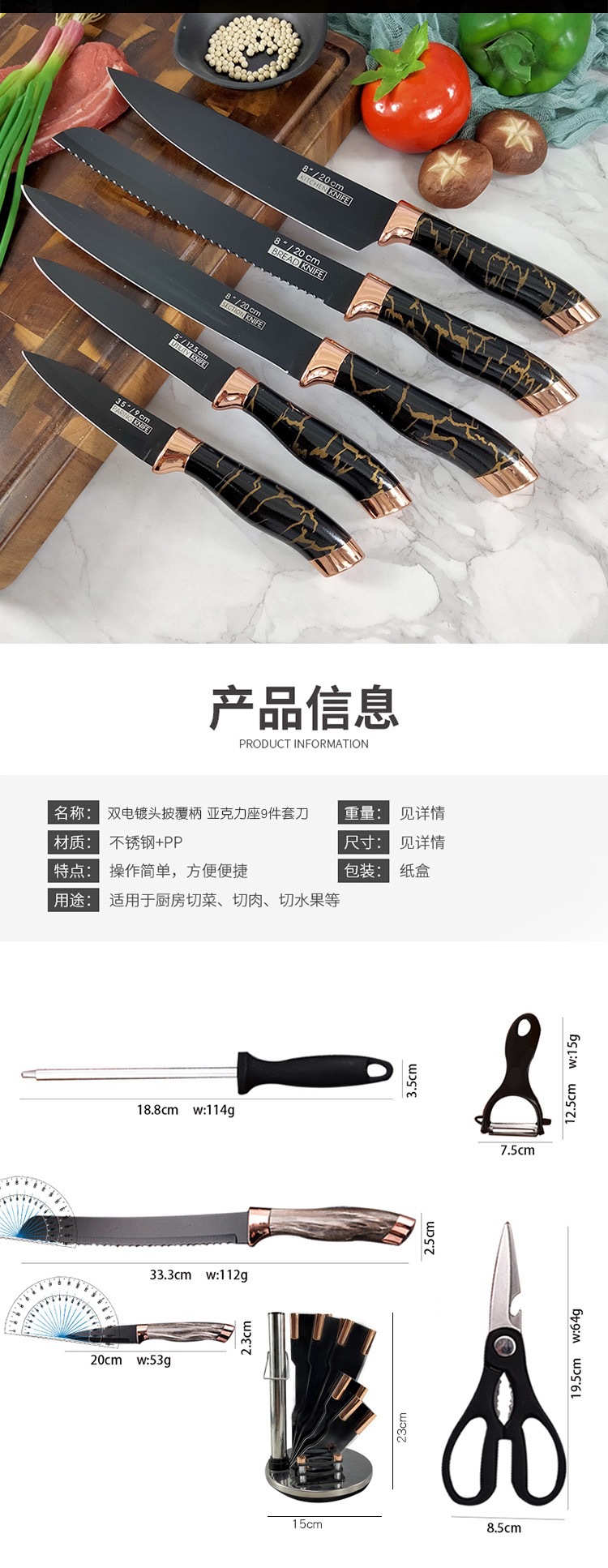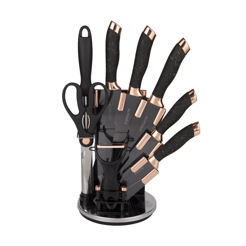 rotating acrylic knife holder 9-piece black gold