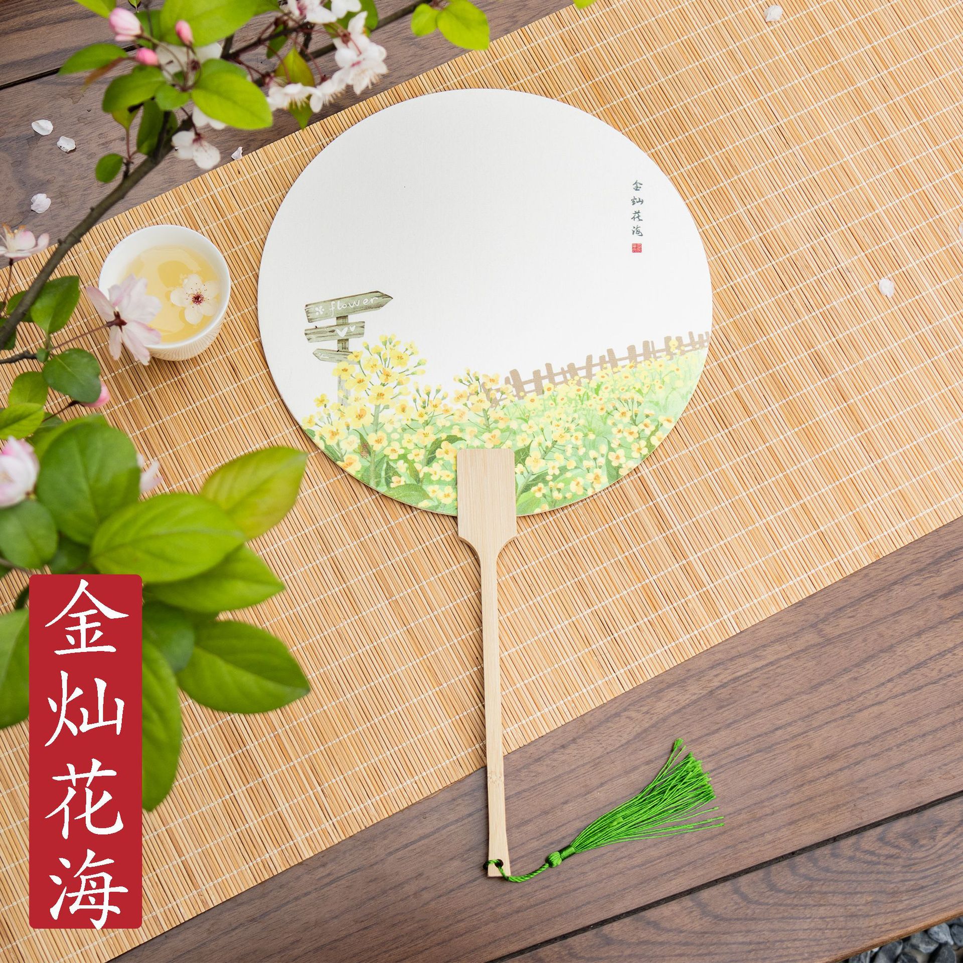 [jincan flower sea] spring landscape paint fan