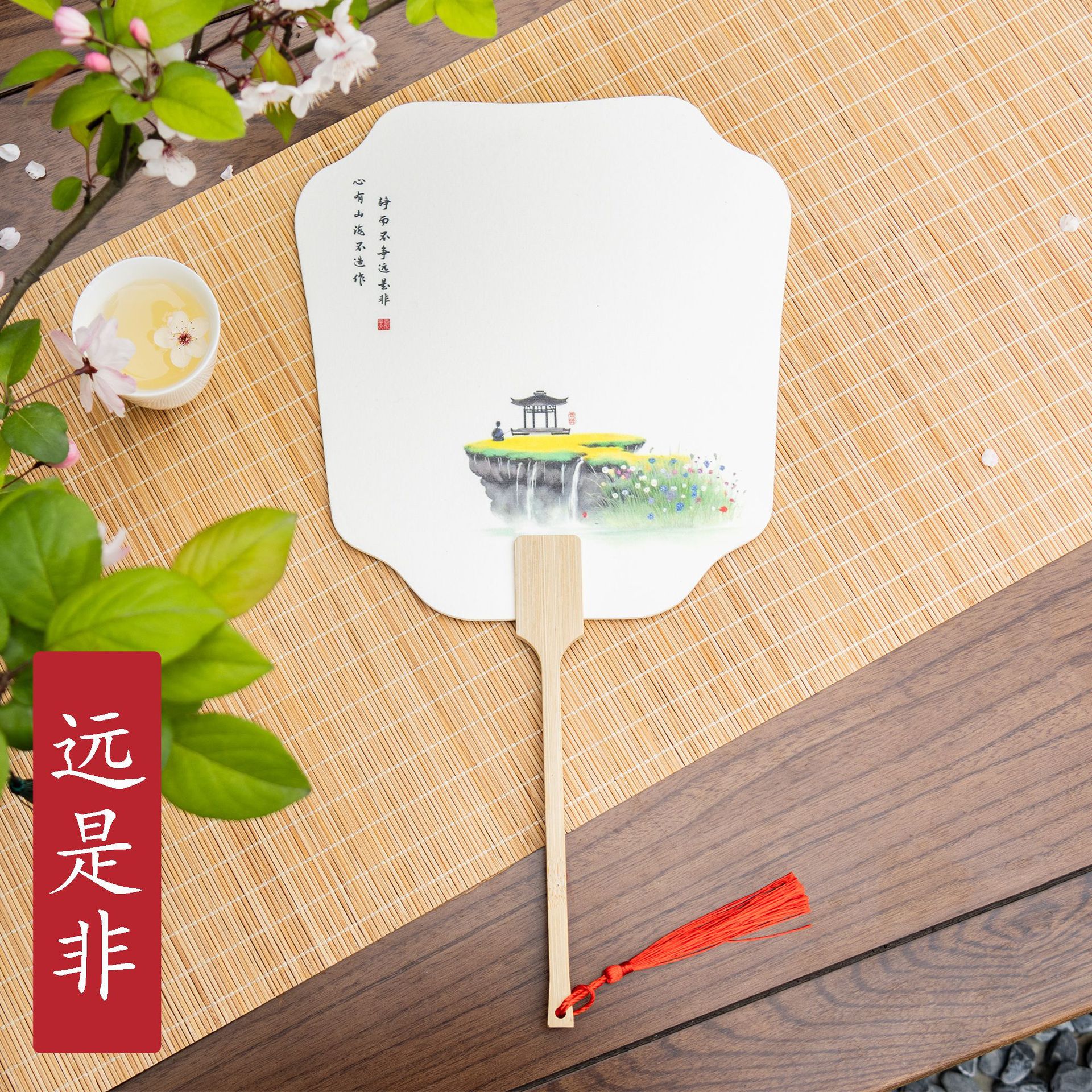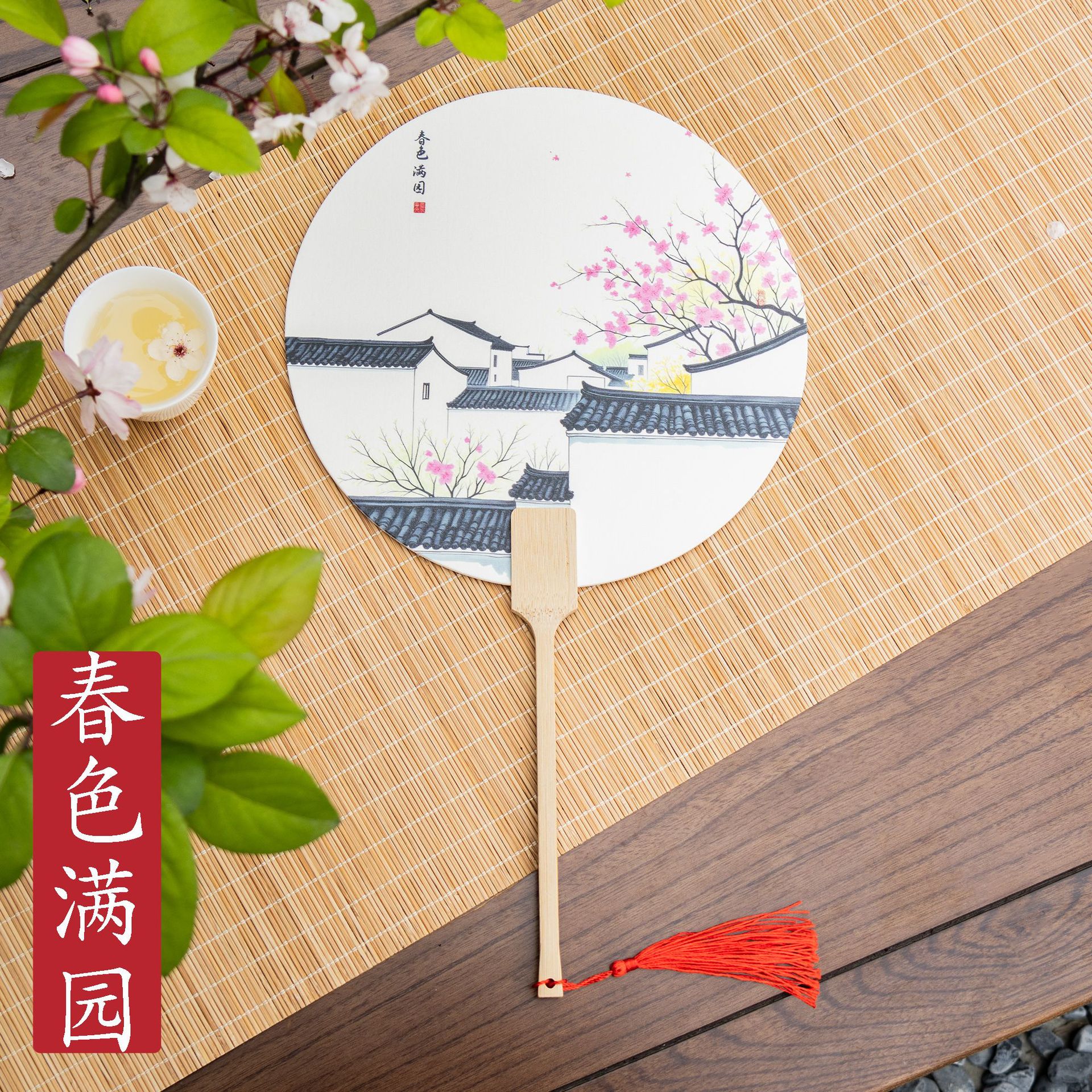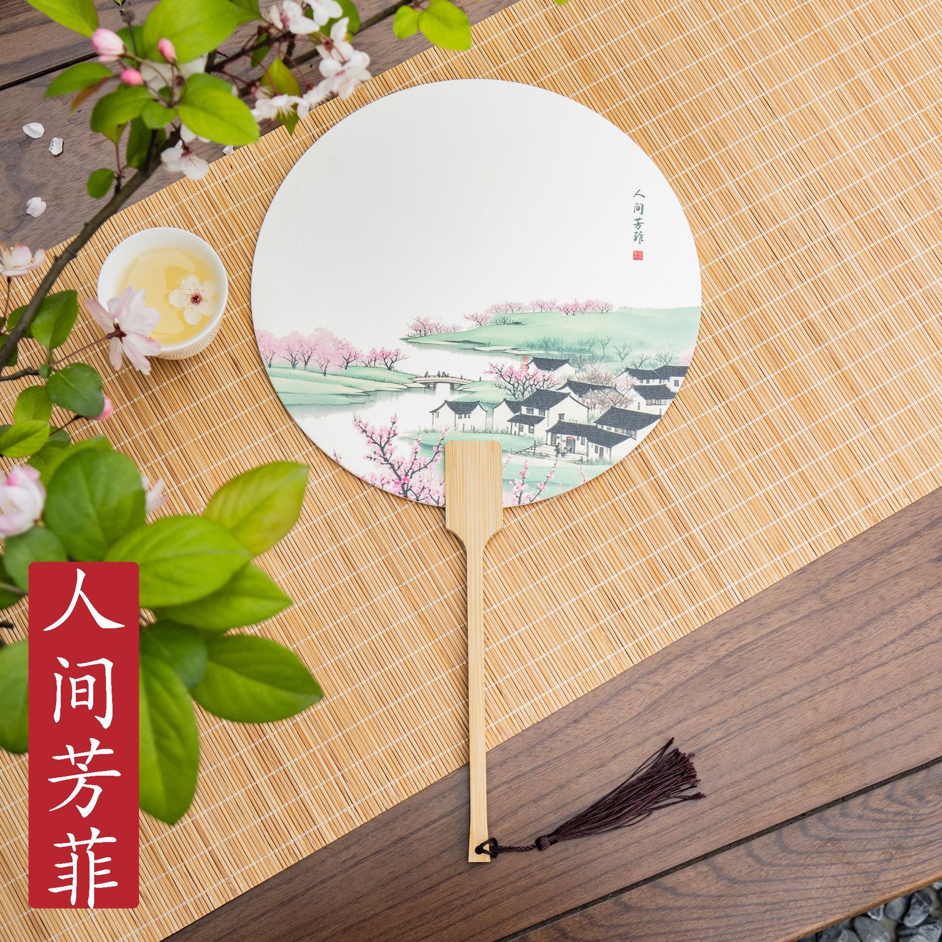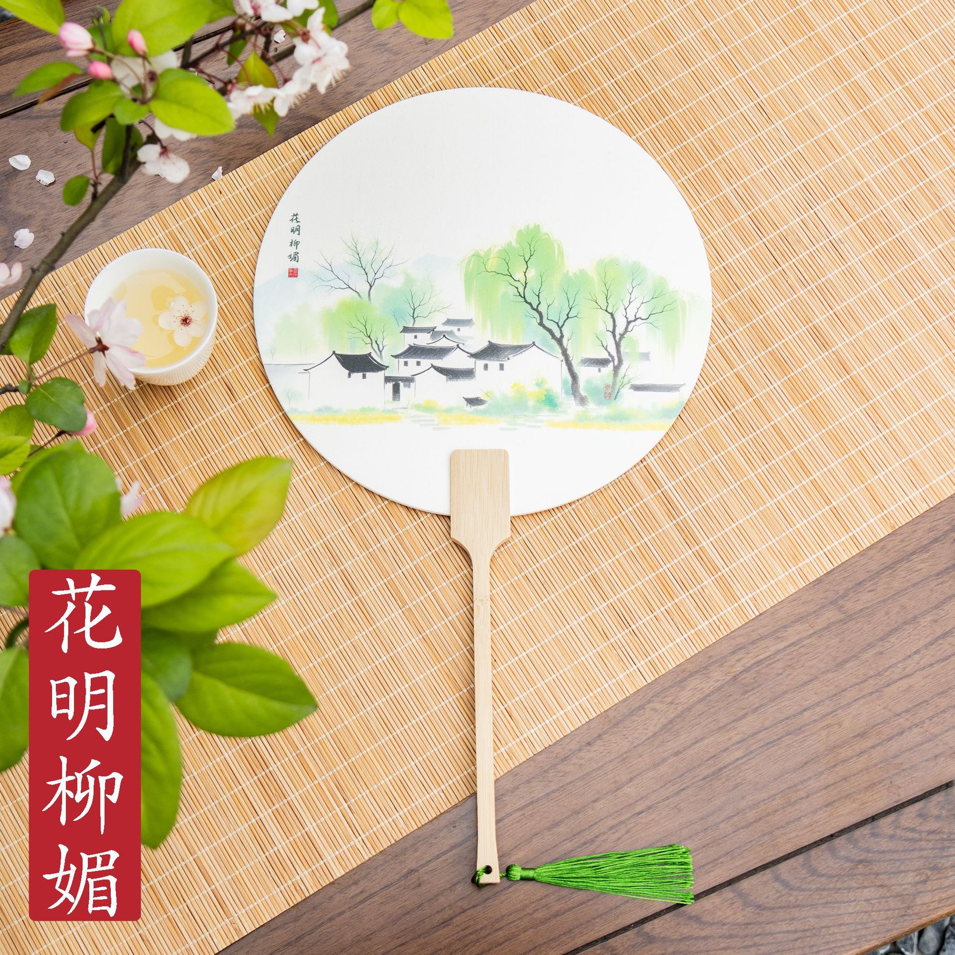 [green fat red thin] spring landscape paint fan
