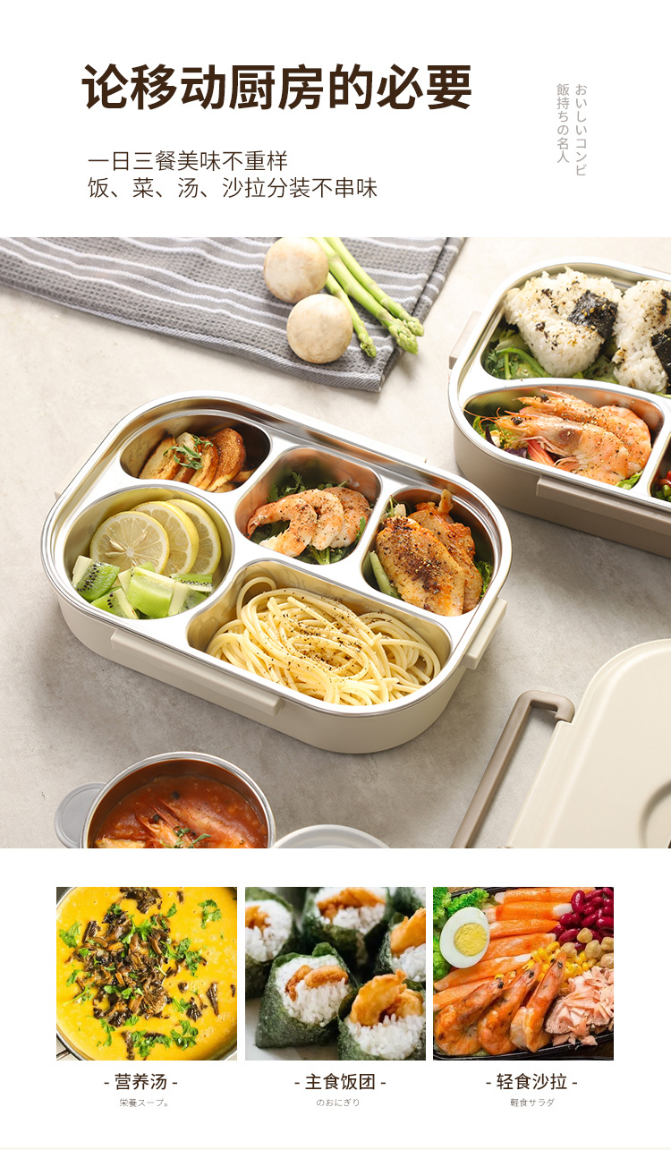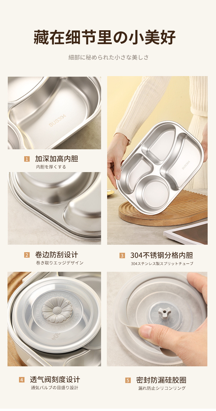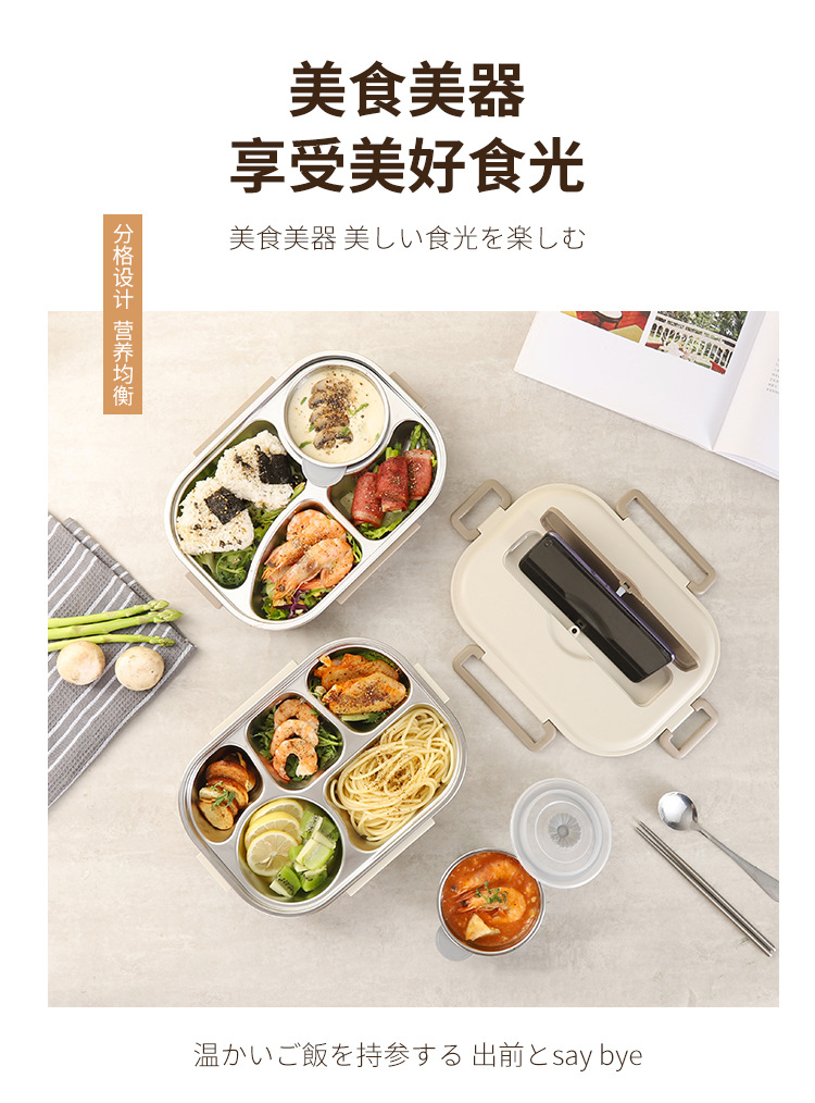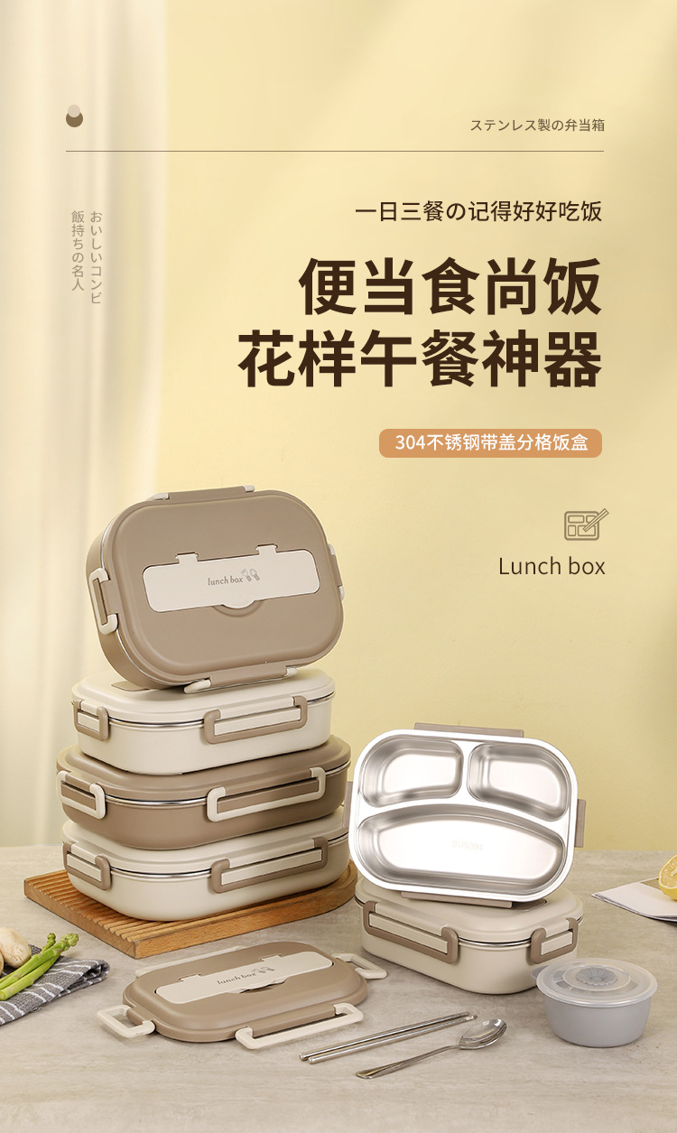 304 stainless steel lunch box student canteen convenient insulated lunch box large capacity airtight compartment lunch box