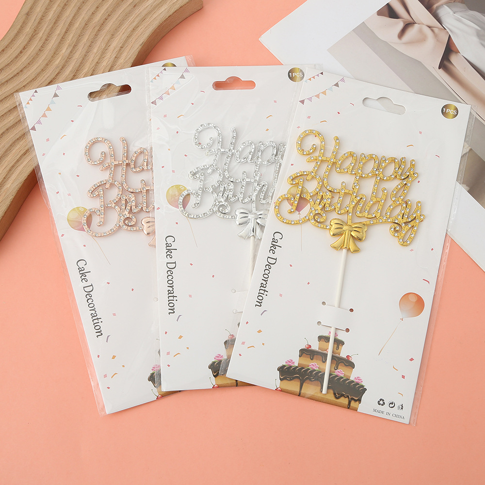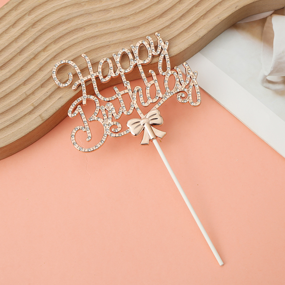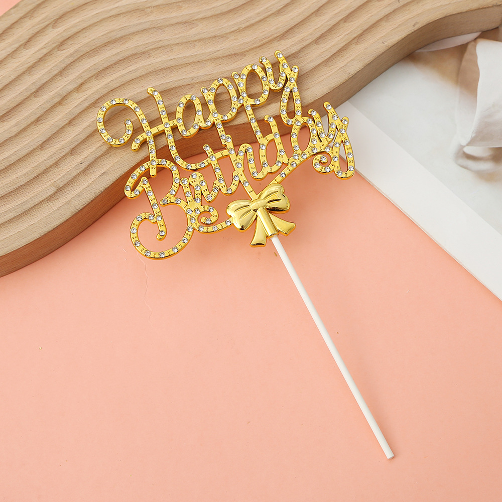 happy birthday english bow spot drill inserts prop decorations personalized unique cake diy layout accessories