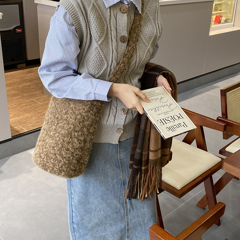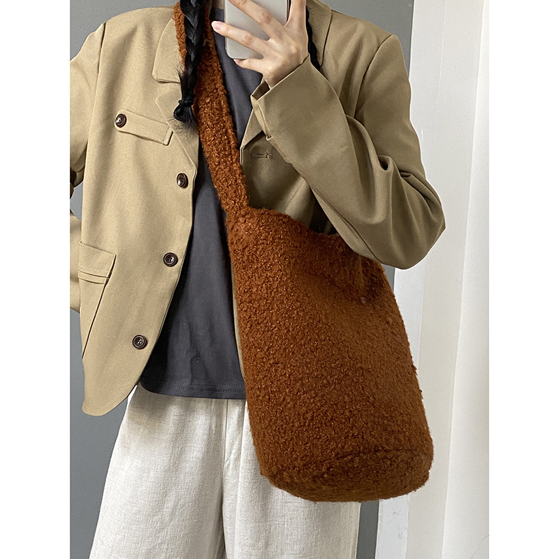 solid color plush one with bucket: maillard brown
