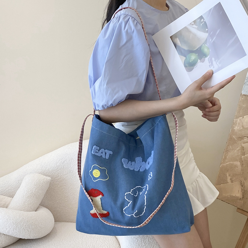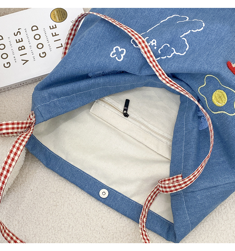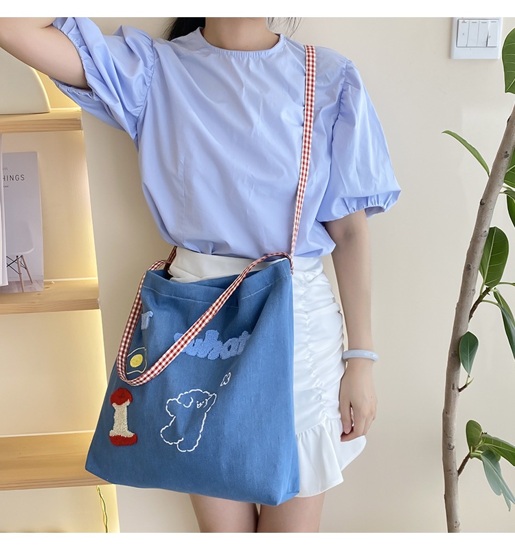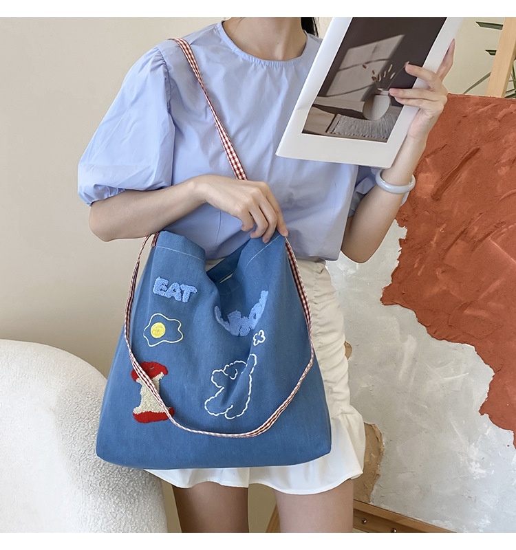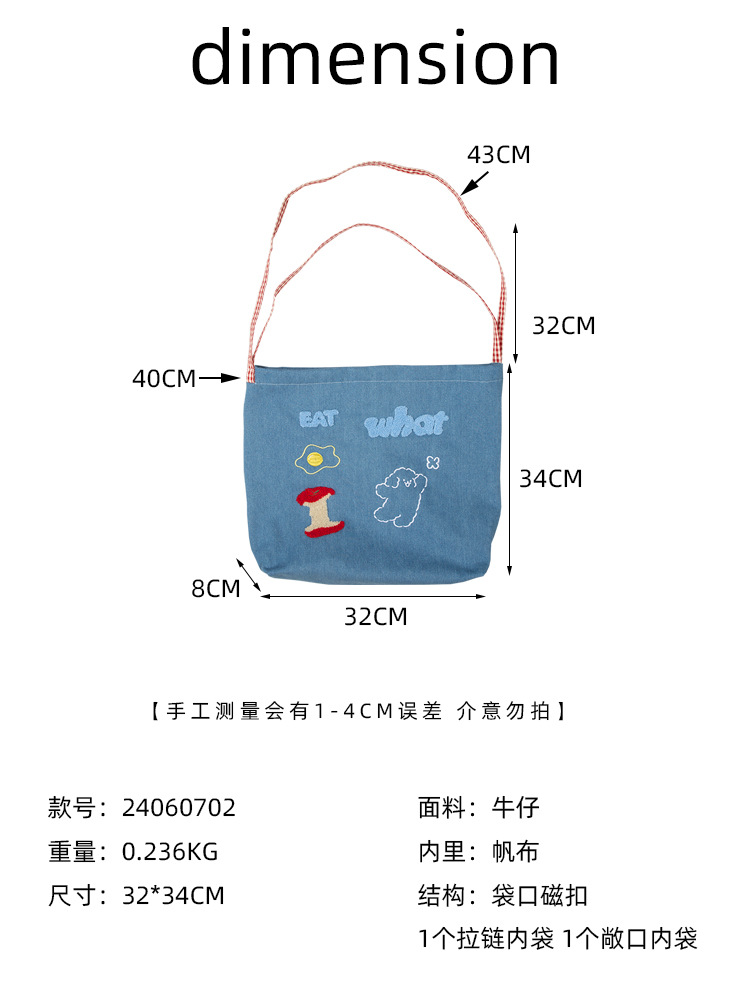 apple core light blue denim shoulder crossbody