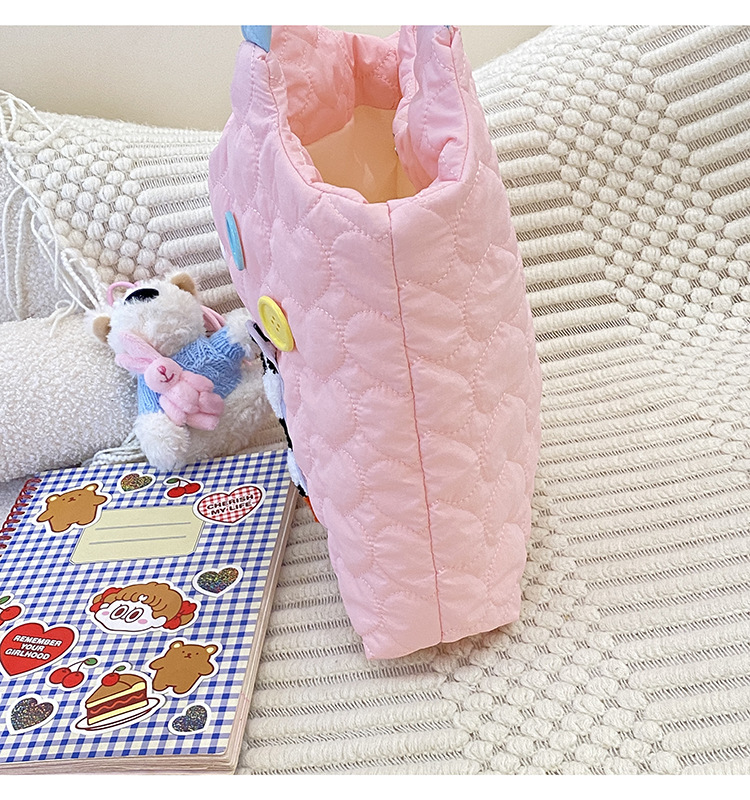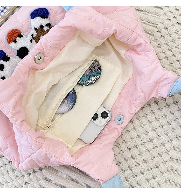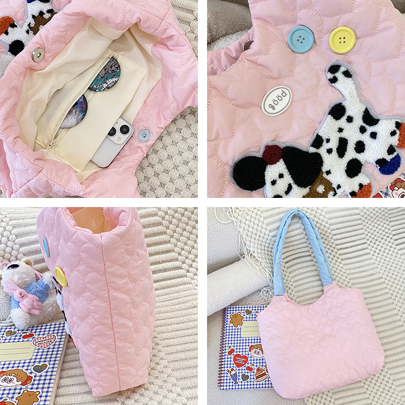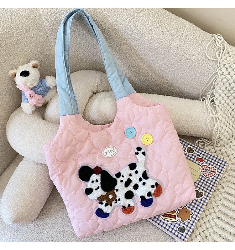 puppy embroidery contrast color one shoulder pink