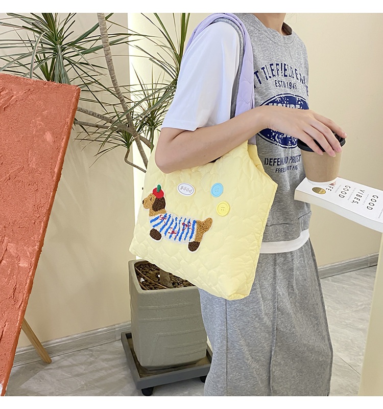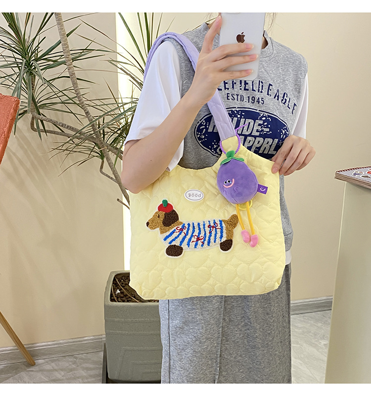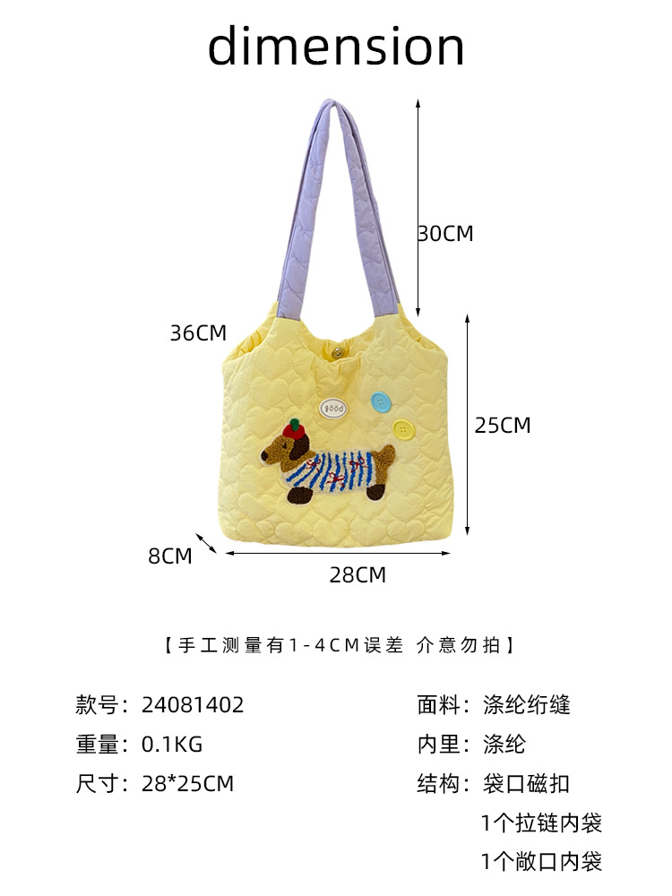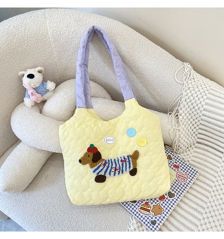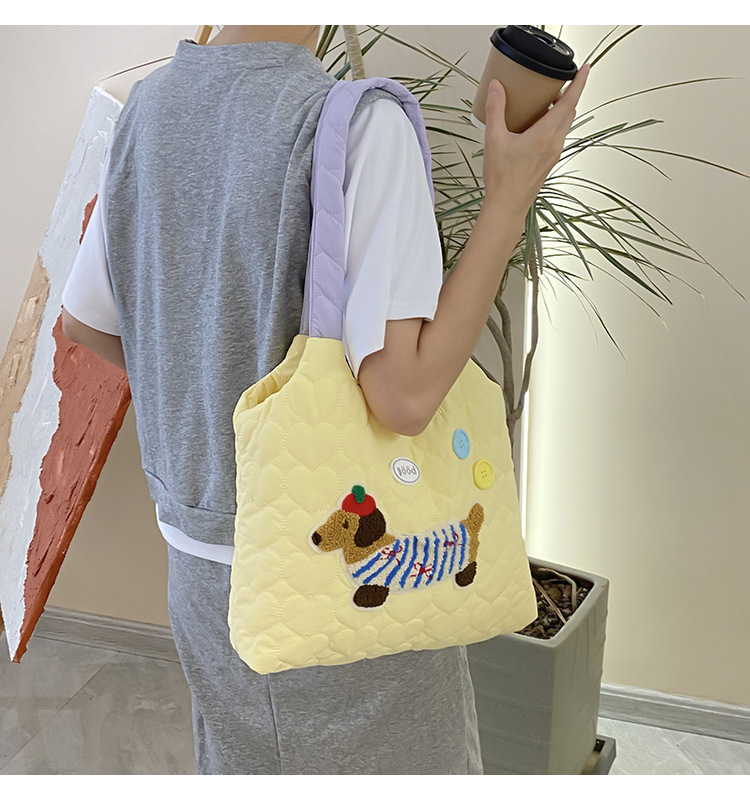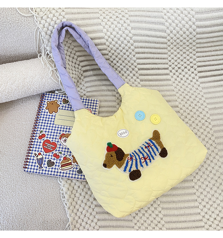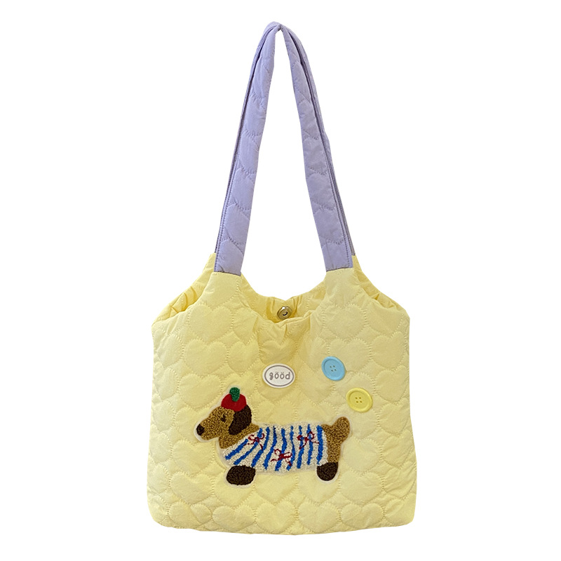 puppy embroidery contrast color one shoulder yellow