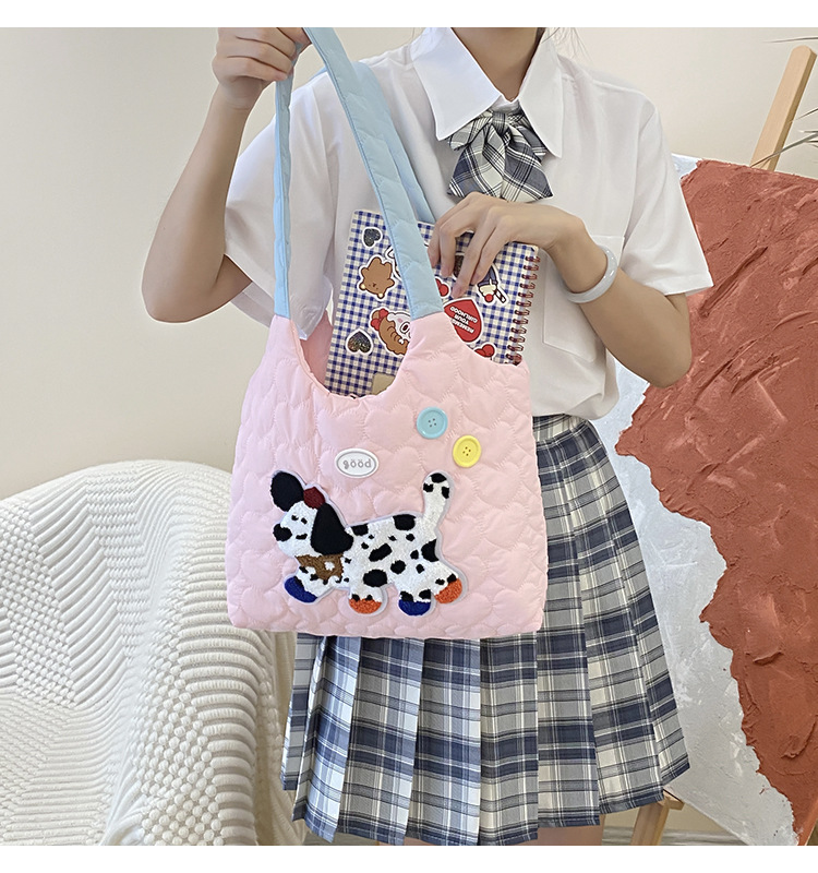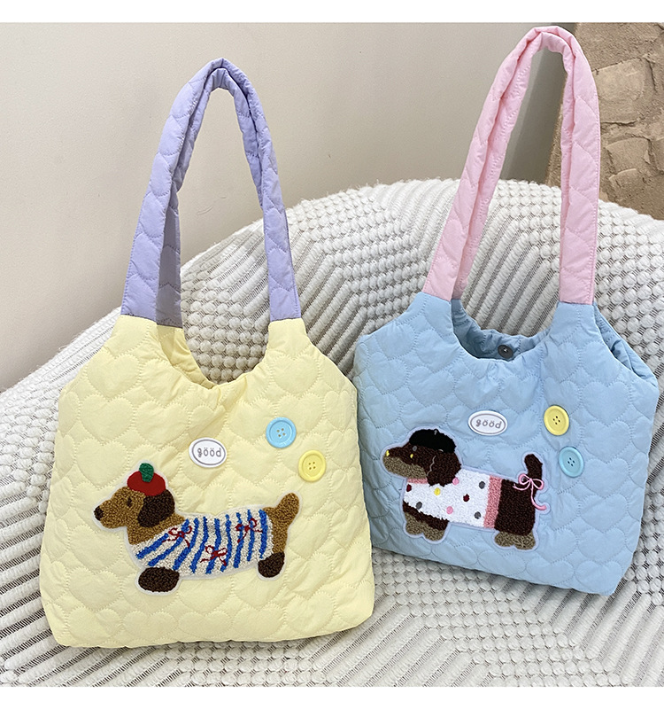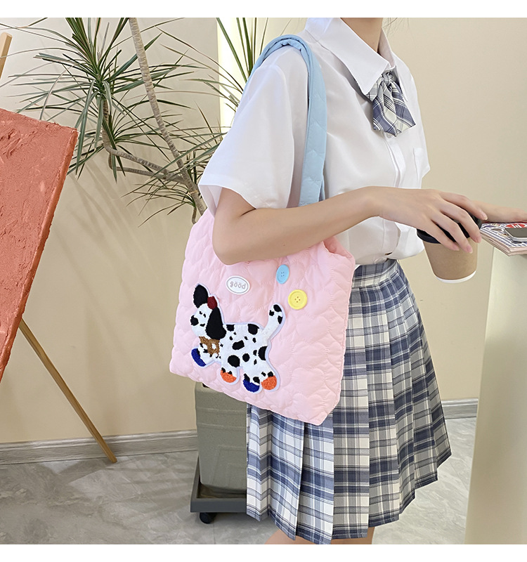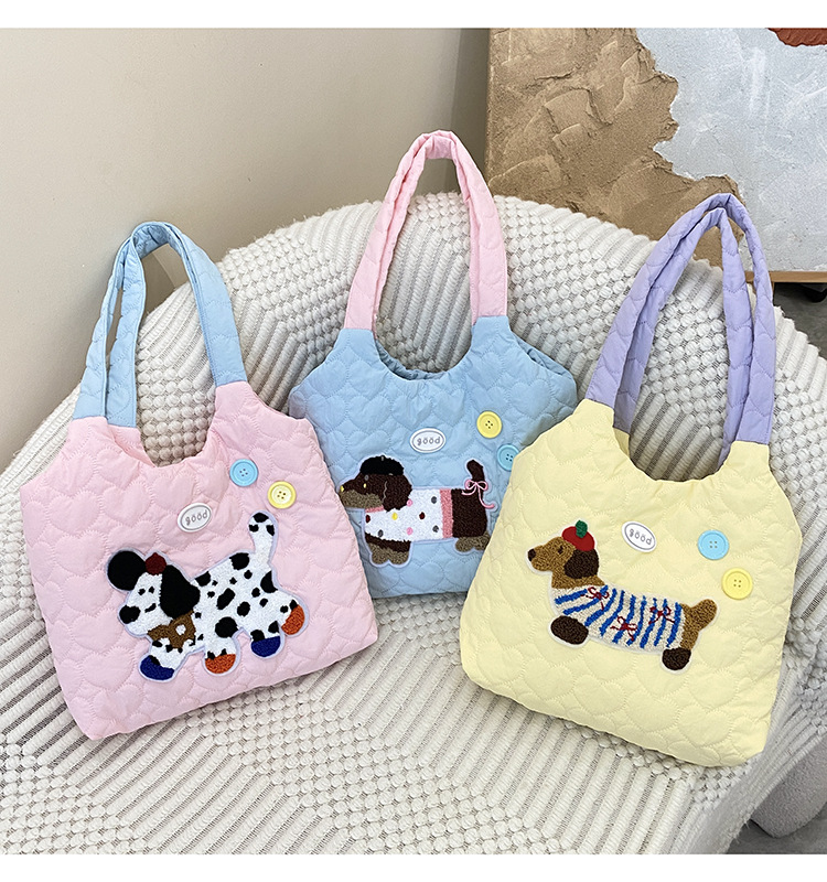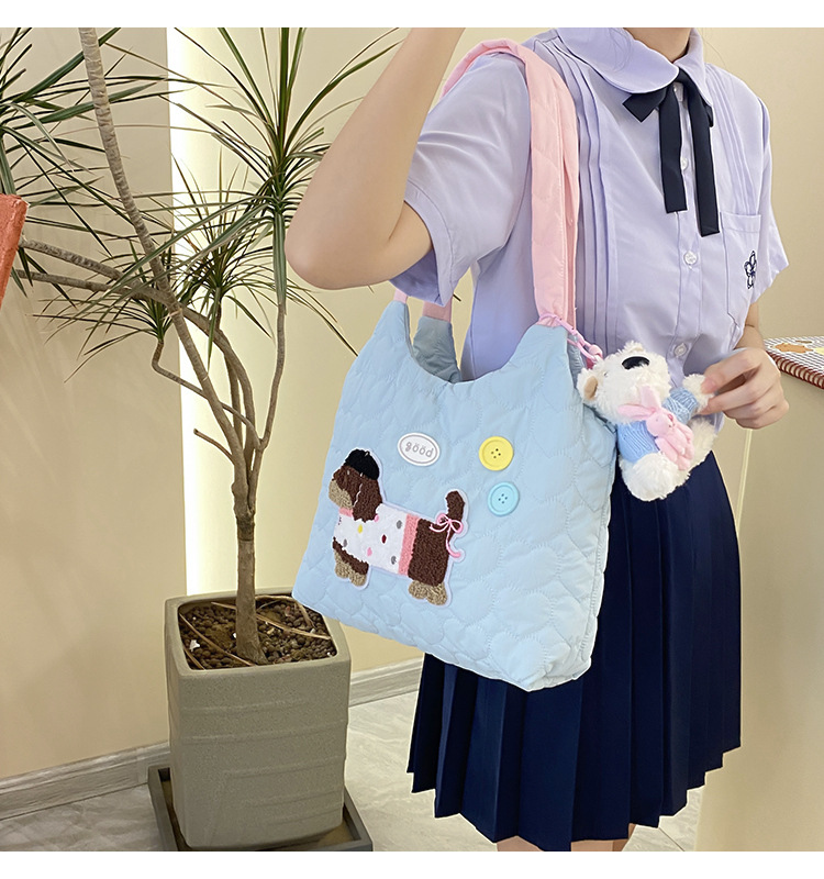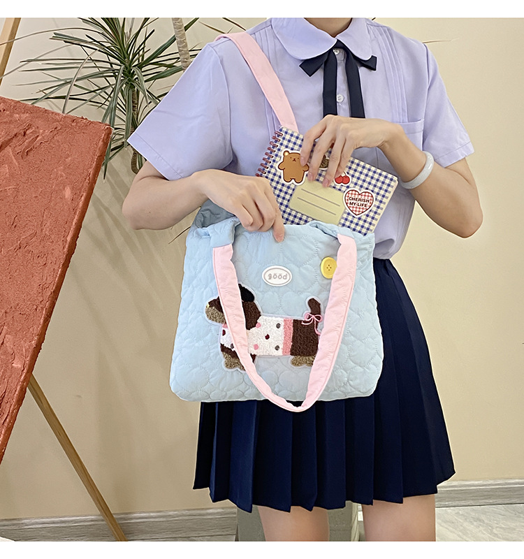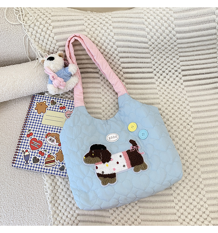 puppy embroidery contrast color shoulder blue