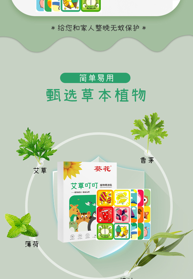 sunflower ding ding stickers 1 box 36 stickers +4 bottles argy wormwood mosquito repellent cream