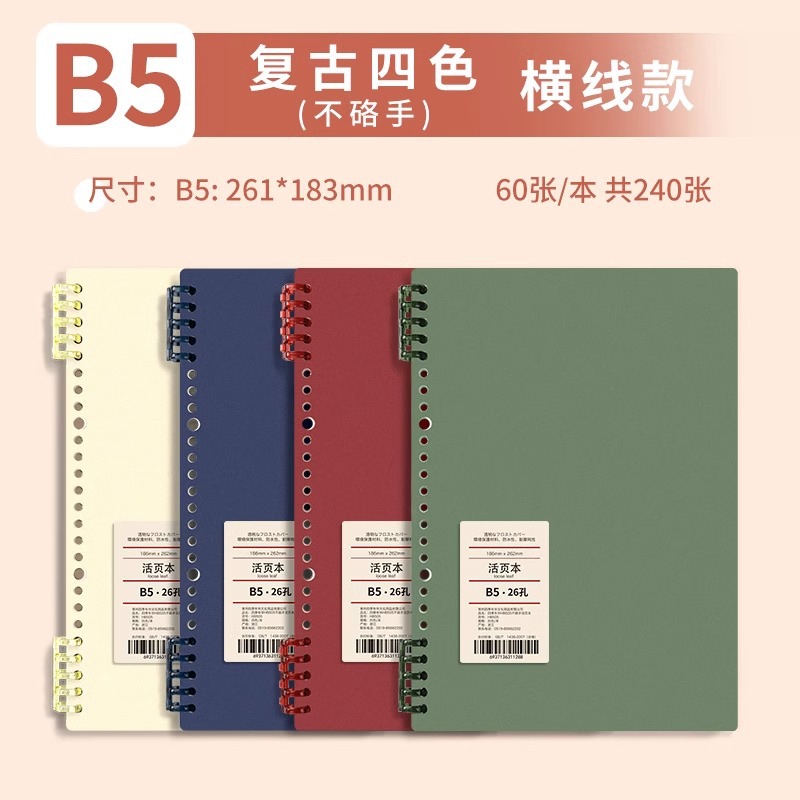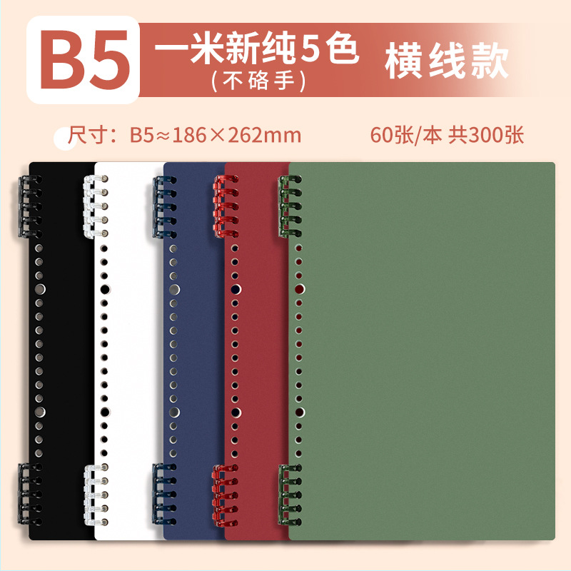 b5 · one meter new pure five colors · horizontal line · 5 books · 300 sheets/600 pages