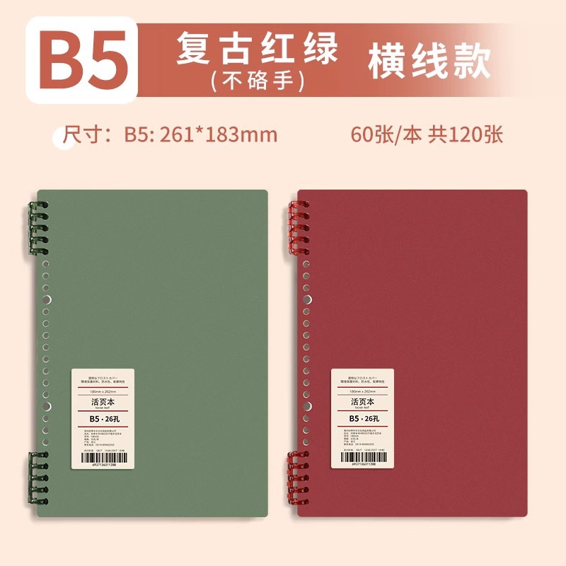b5 • 1 m new pure red and green • horizontal line • 2 books · 120 sheets/240 pages