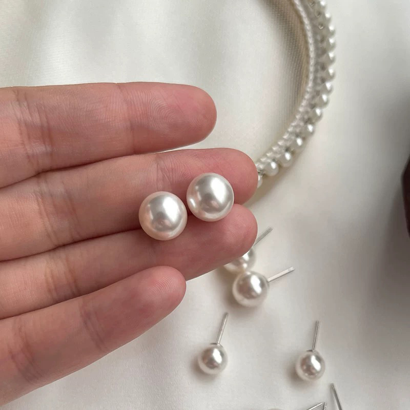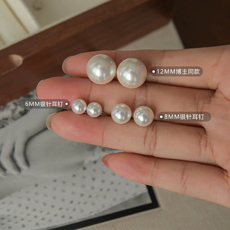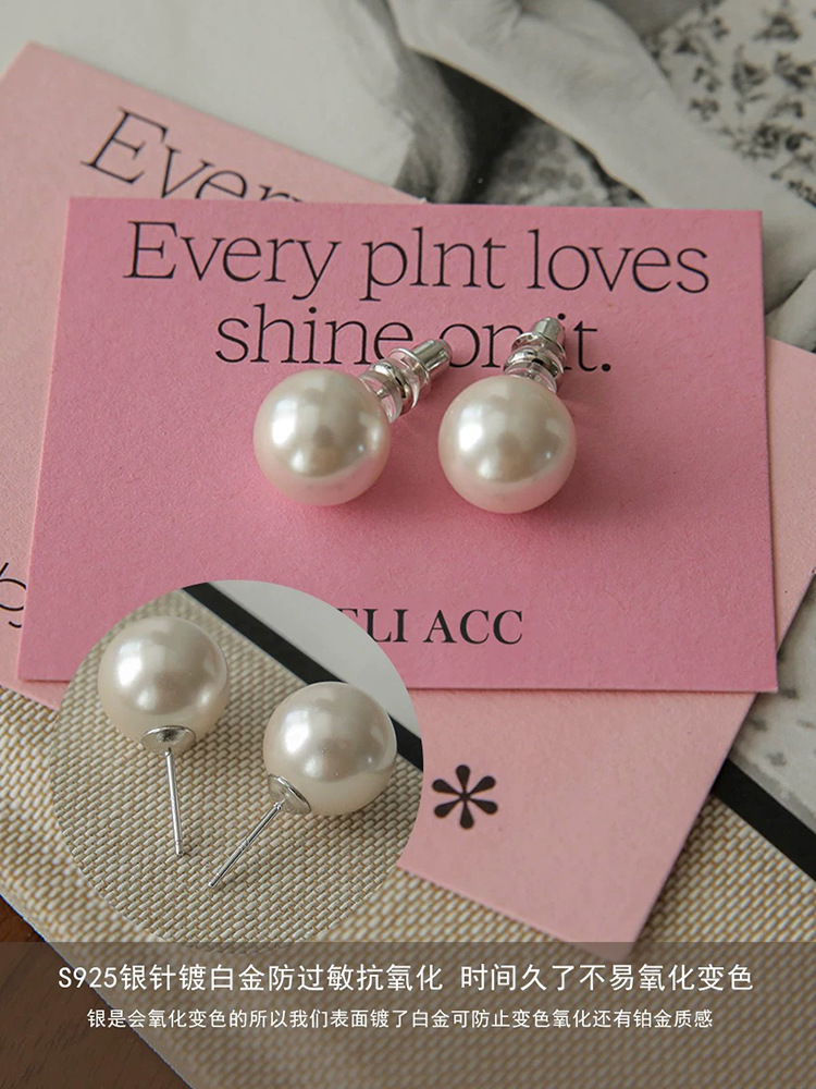 8mm650 pearl stud earrings [sterling silver needle]]