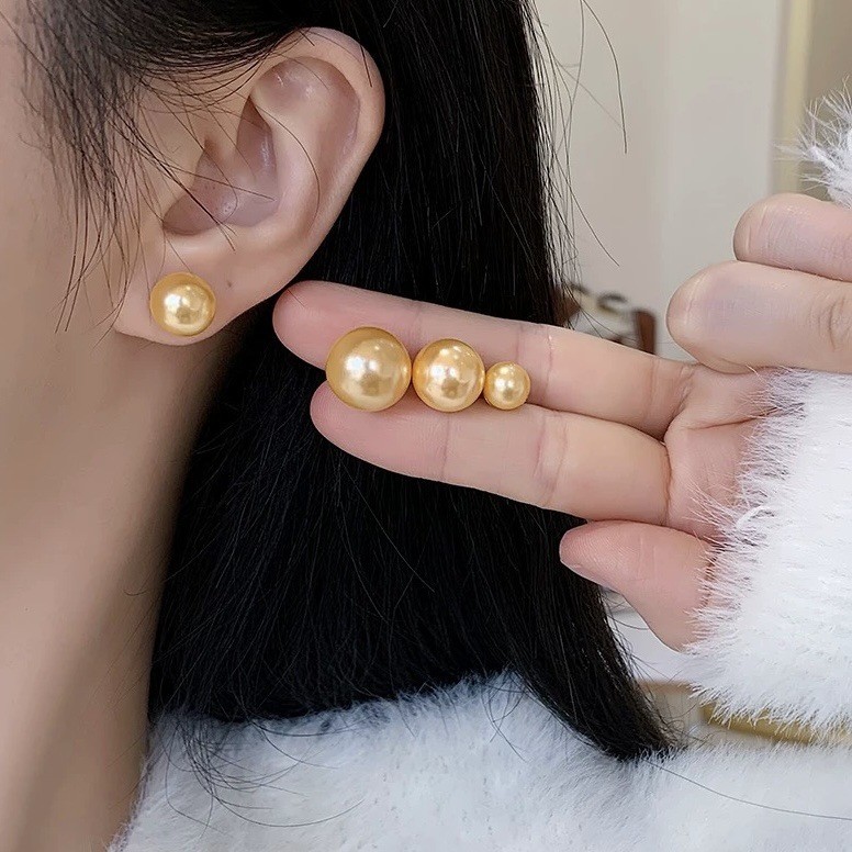 14mm gold pearl stud earrings [sterling silver needle]]