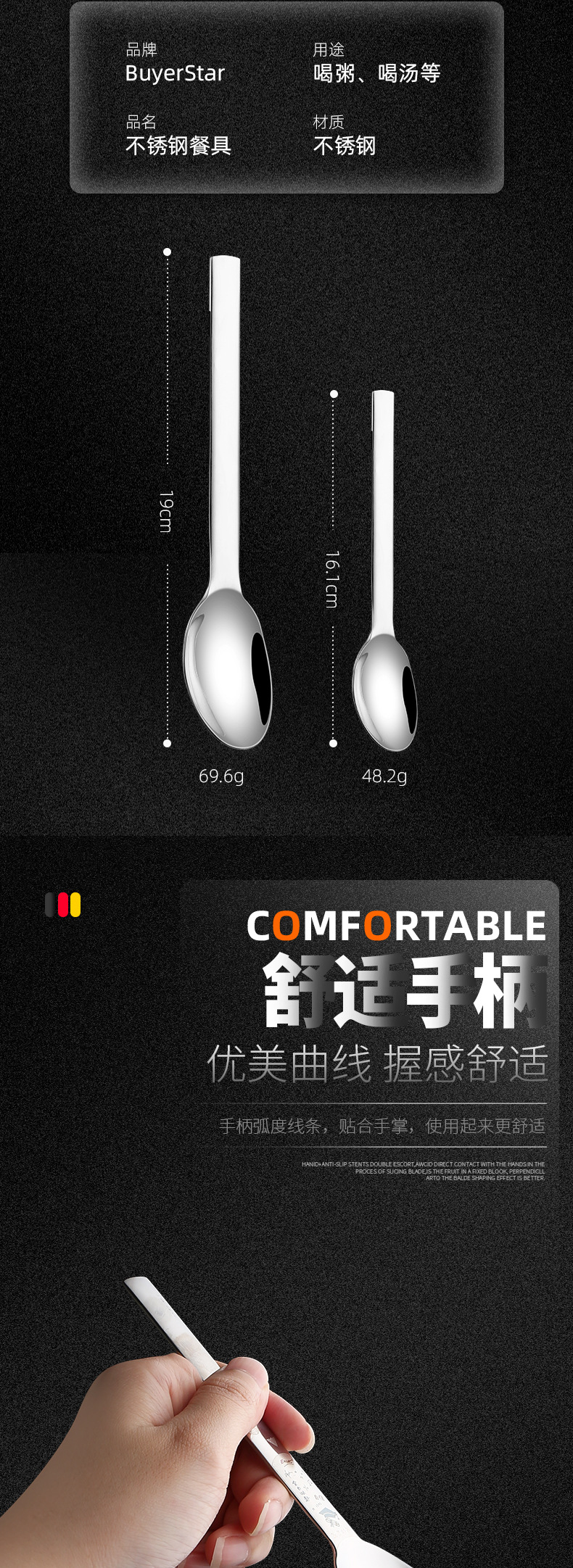 bsd-65 light body 304 thickened stainless steel spoon large