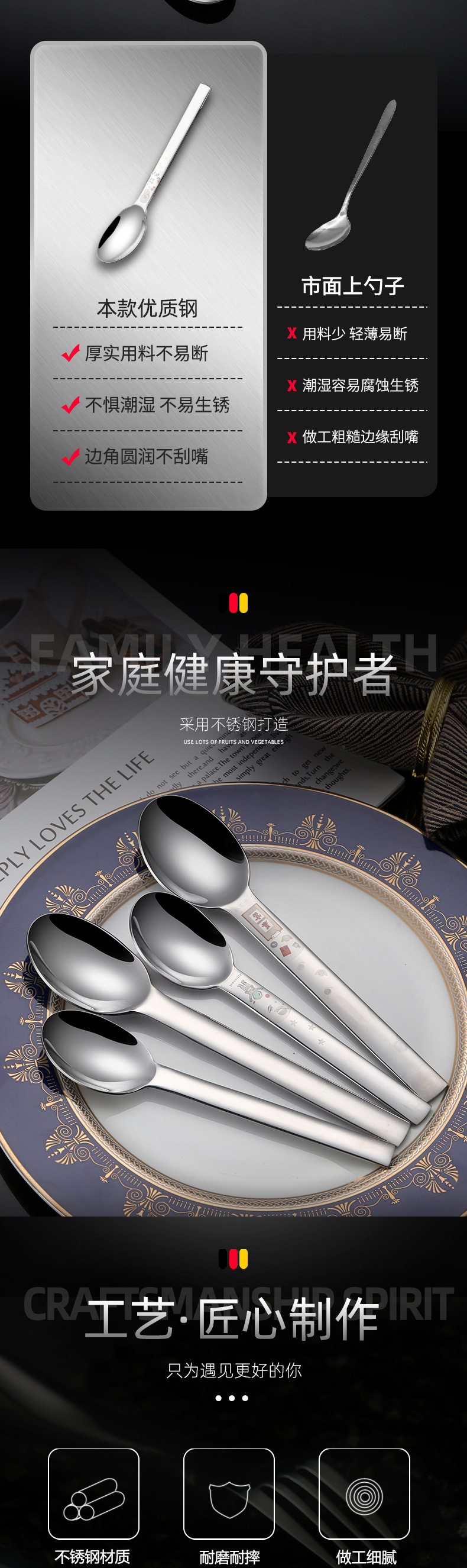 bsd-65 thick 304 stainless steel spoon rich large size