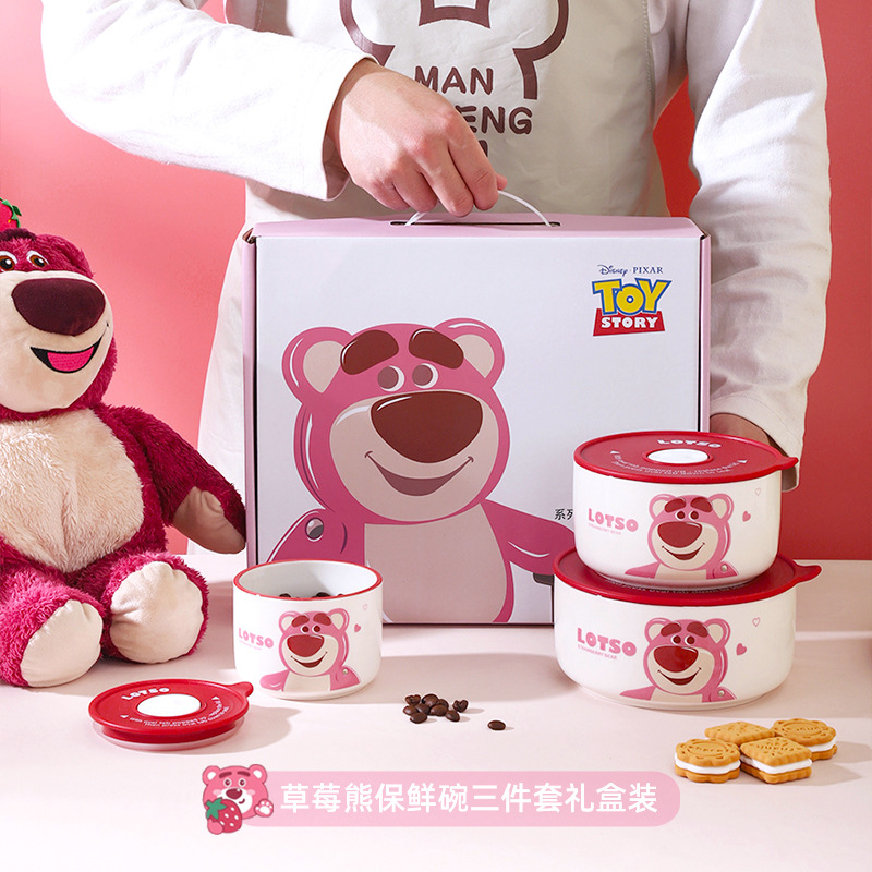 [gift box] strawberry bear freshness bowl three-piece set